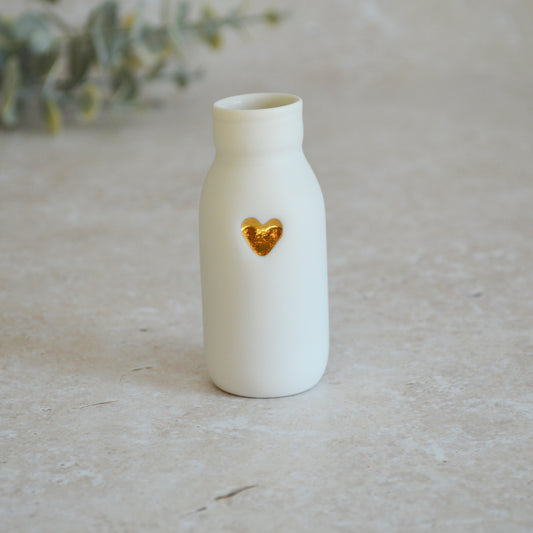 Seconds* SMALL White Bottle Vase With A Gold Embossed Heart | Bottle Vase | Flower Vase | Summer Vase | Mother's Day | Porcelain (A29)