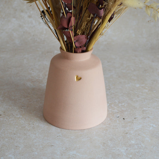 Seconds* Small Pastel Pink Vase With A Gold Embossed Heart | Flower Vase | Small Vase | Stoneware Vase (A35)