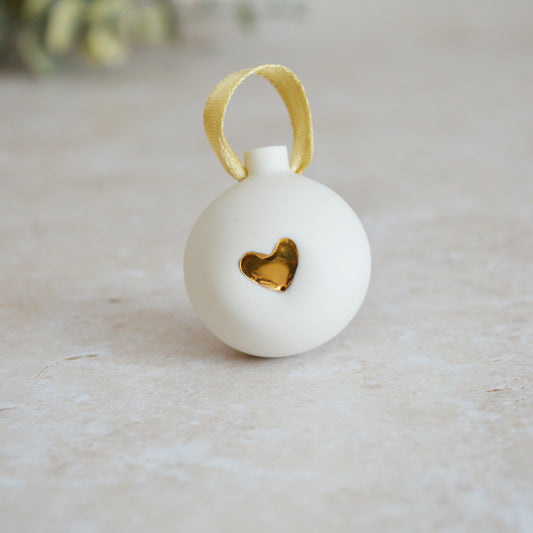 Seconds* Sample* Mini Porcelain Bauble With A Gold Heart | Porcelain | Hanging Christmas Decorations | Christmas Tree Decor (B93)