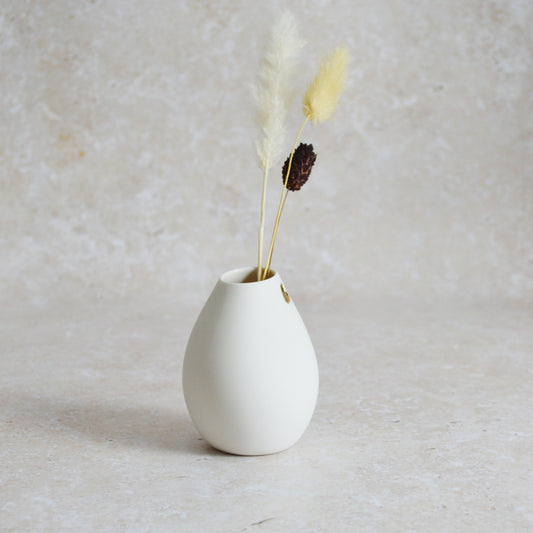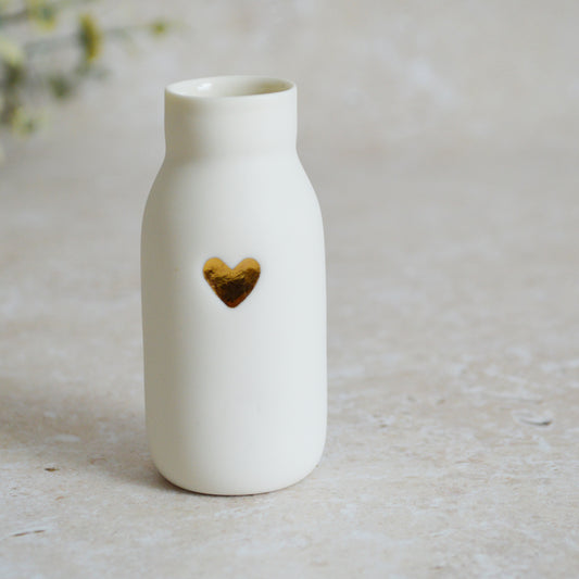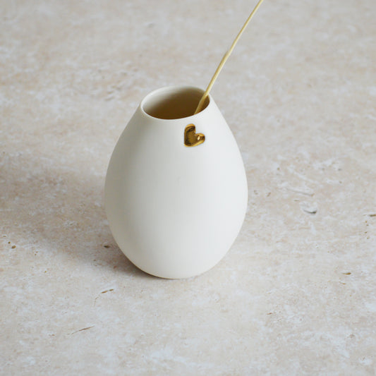 Small White Bud Vase with an embossed gold heart | Porcelain | Flower Vase | Mother's Day Vase
