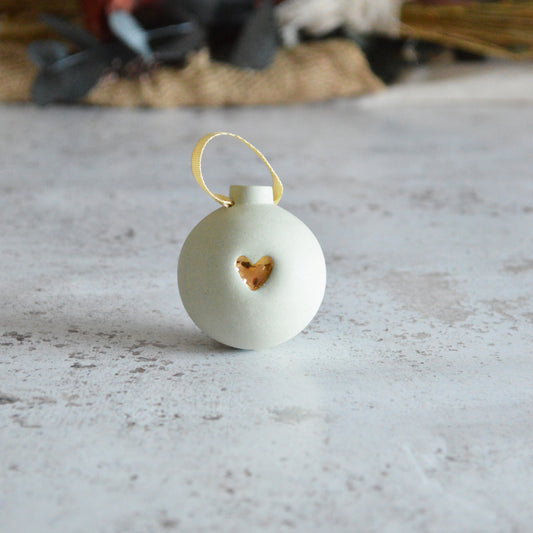 Small Pastel Bauble With A Gold Heart | Stoneware | Hanging Christmas Decorations | Christmas Tree Decor