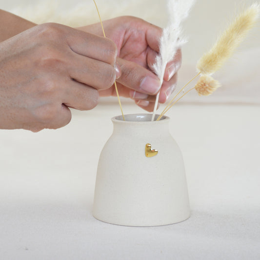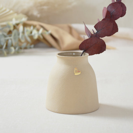 Small Beige Ceramic Vase With A Gold Embossed Heart | Neutral Vase | Flower Vase | Mother's Day | Stoneware