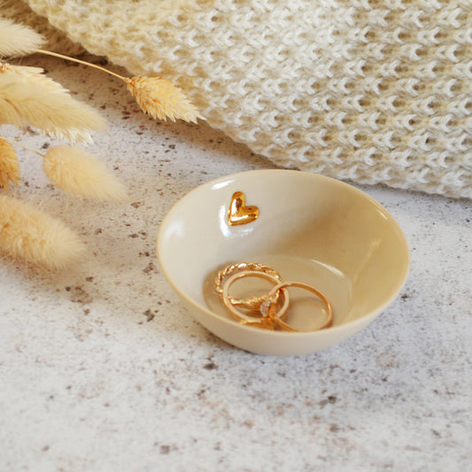 Small Trinket/Ring Dish With A Gold Embossed Heart | Ring Dish | Jewellery | Porcelain
