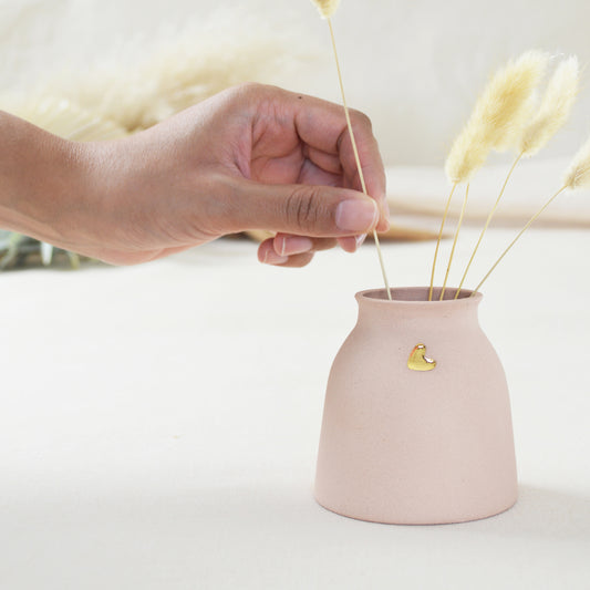 Small Pastel Pink Vase With A Gold Embossed Heart | Flower Vase | Small Vase | Stoneware Vase