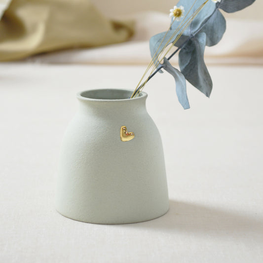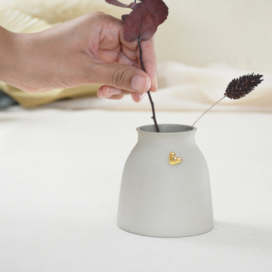 Small Pastel Grey Vase With A Gold Embossed Heart | Wide Neck Vase | Flower Vase | Stoneware