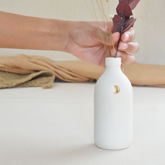 White Bottle Vase With A Gold Embossed Crescent Moon | Flower Vase | Porcelain Vase