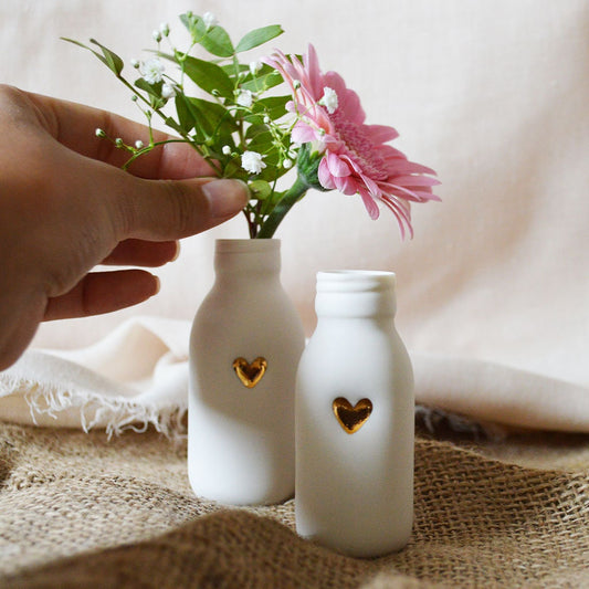 White Bottle Vase With A Gold Embossed Heart | Bottle Vase | Flower Vase | Summer Vase | Mother's Day | Porcelain