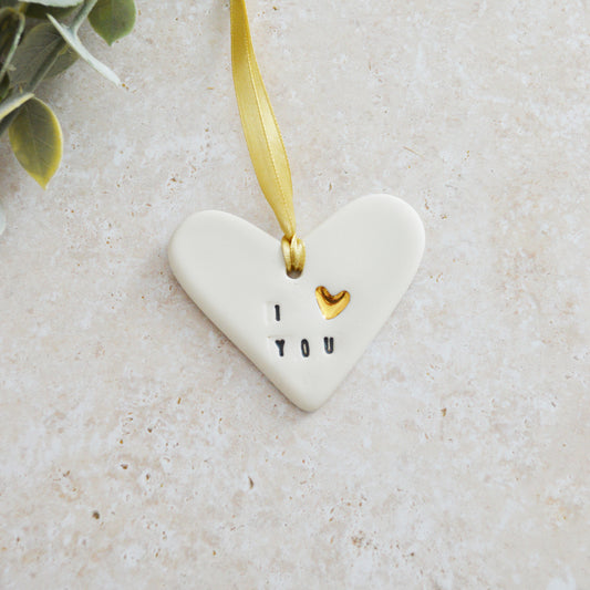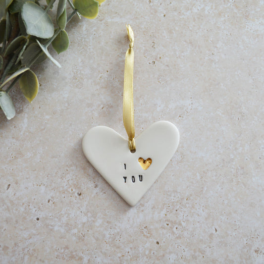 Seconds* I Love You Heart With A Gold Heart | Porcelain | Hanging Heart Decoration | Valentines Keepsake (B80)