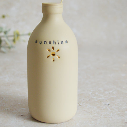 Seconds* Discontinued* Sunshine Bottle Vase With A Gold Embossed Sun | Flower Vase | Porcelain Vase (A7)