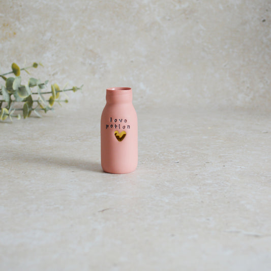 Seconds* Discontinued*Love Potion Bottle Vase With A Gold Embossed Heart | Valentine's Gift | Porcelain Vase (A61)