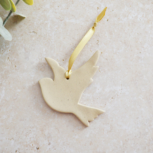 Sample* Stoneware Dove | Beige| Hanging Decoration | Christmas Decor | Tree Ornament (B9)