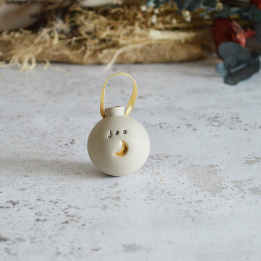 Sample* Mini Bauble Hanging Decoration With A Gold Heart | Speckled Beige | Stoneware | Hanging Christmas Decorations | Mini Christmas Tree Decor (B15)