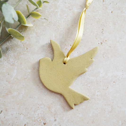 Sample* Mini Hanging Dove Gold Lustre Markings | Sand| Hanging Decoration | Christmas Decor | Tree Ornament (A108)