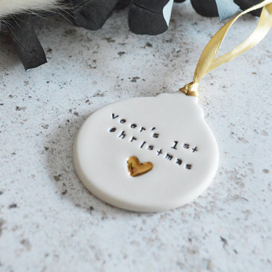 PRE-ORDER PERSONALISED Small Pastel Bauble With A Gold Heart | Stoneware | Hanging Christmas Decorations | Christmas Tree Decor