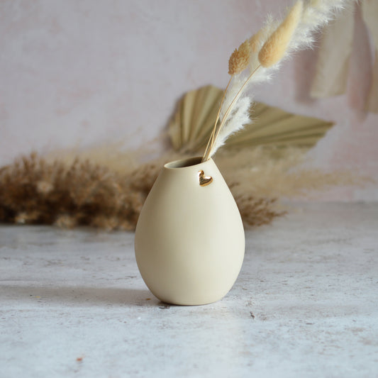 Pastel Beige Bud Vase With An Embossed Gold Heart | Porcelain | Flower Vase | Mother's Day