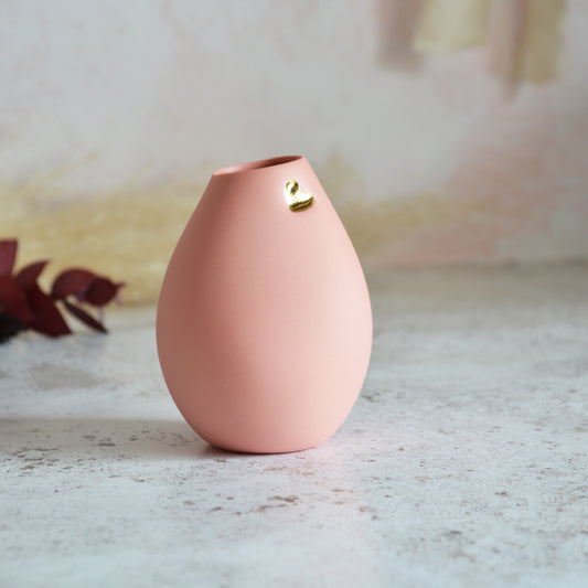 Pastel Pink Bud Vase With An Embossed Gold Heart | Valentines | Flower Vase | Porcelain