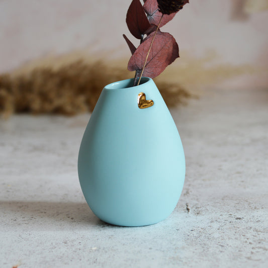 Seconds* Pastel Mint Bud Vase With An Embossed Gold Heart | Spring Vase | Mother's Day Gifts | Porcelain (A17)
