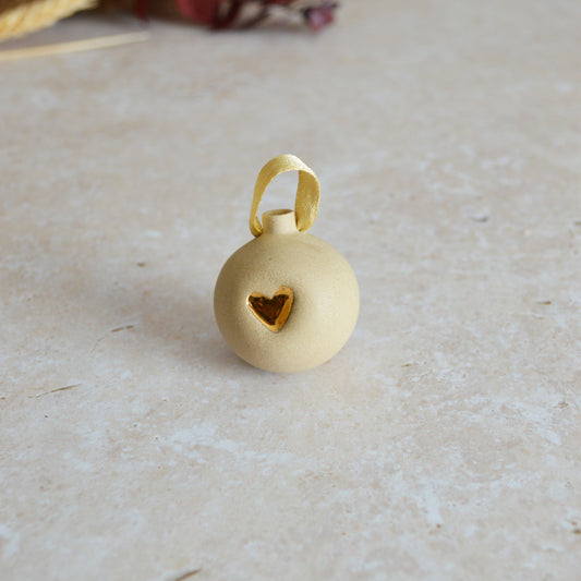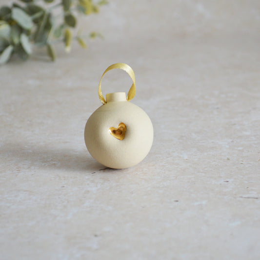 Seconds* BEIGE Small Pastel Bauble With A Gold Heart | Stoneware | Hanging Christmas Decorations | Christmas Tree Decor (B36)