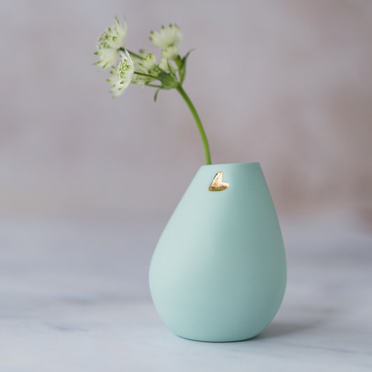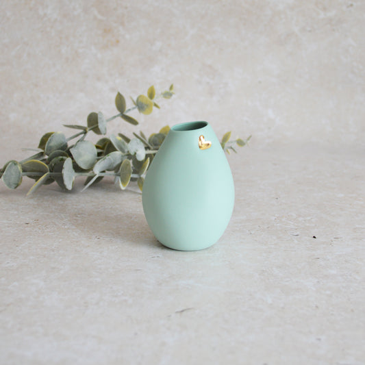 Seconds* Pastel Mint Bud Vase With An Embossed Gold Heart | Spring Vase | Mother's Day Gifts | Porcelain (A17)