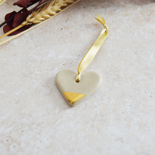 Sample* Mini Hanging Heart Tag | Glazed Speckled Beige | Mini Heart With Gold Tip | Valentine's Gift | Stoneware (A111)