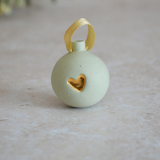 Seconds* MINT Mini Pastel Bauble With A Gold Heart | Stoneware | Hanging Christmas Decorations | Christmas Tree Decor (B89)