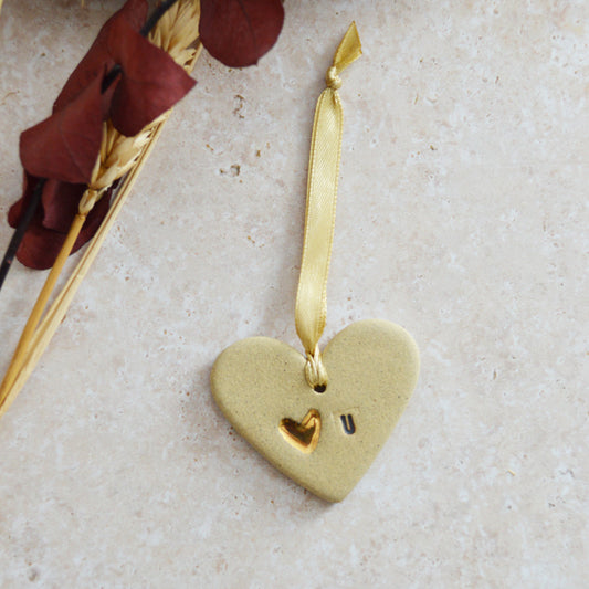 Sample* Mini Bauble Hanging Decoration With A Gold Heart | Sand | Stoneware | Hanging Christmas Decorations | Mini Christmas Tree Decor (B72)