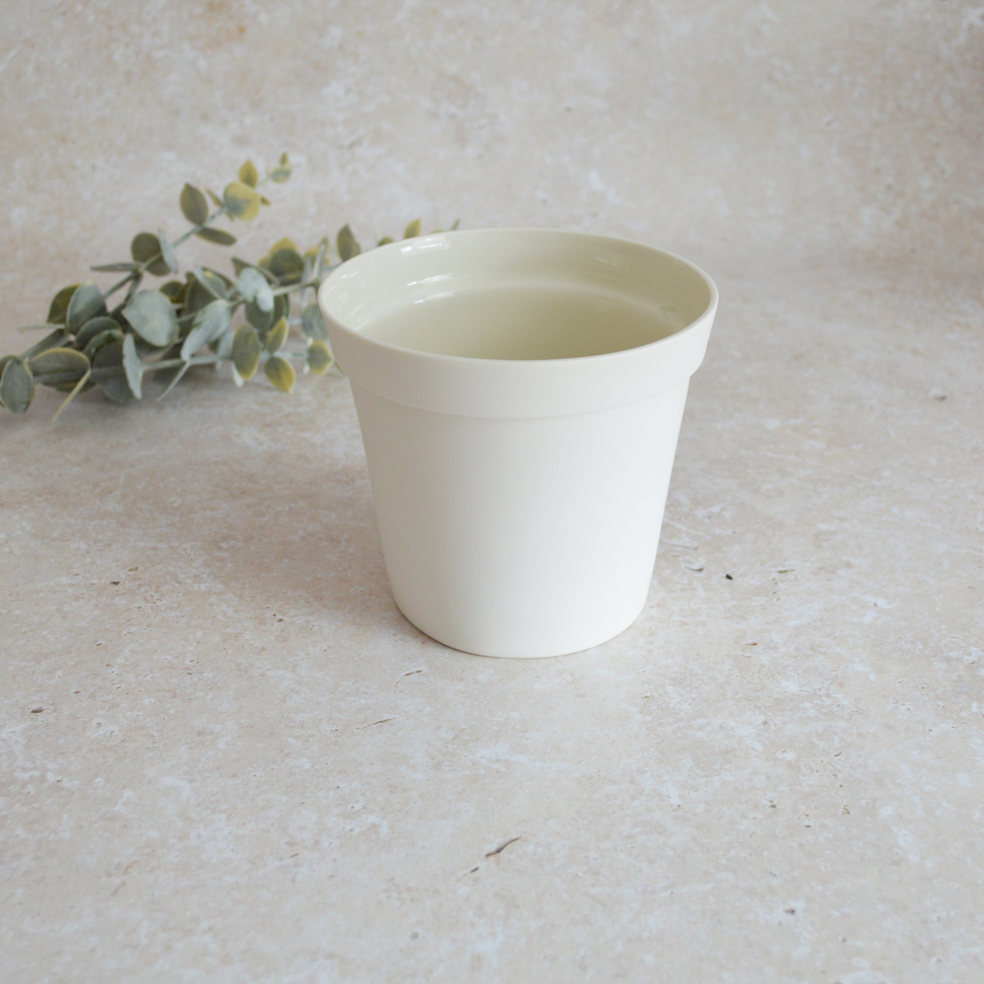 This flower pot is made from porcelain and embossed with our very own heart stamp. The heart is hand painted in gold lustre. Once the pot has gone through it's 9 stages of making, it is then hand polished for a smooth matte feel. It is finished matte on the outside and clear glazed on the inside making the pot water resistant on the inside. This pot does NOT have drainage holes.