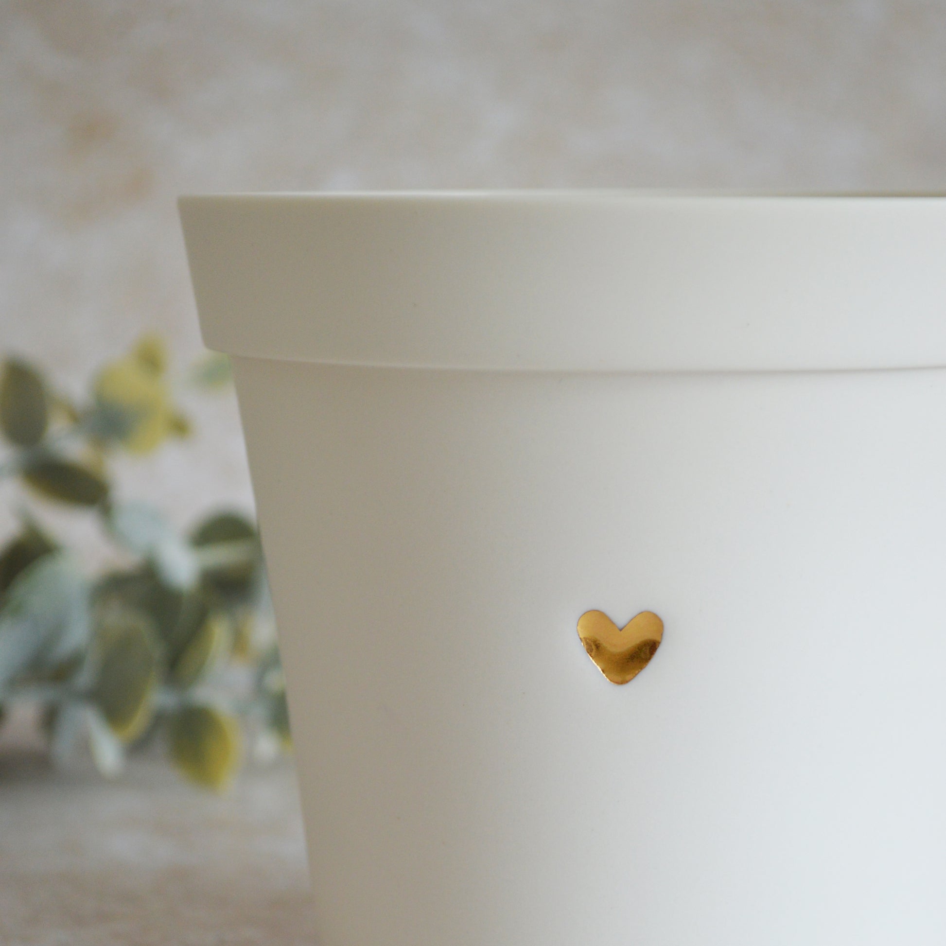 Discontinued* Small Flower Pot With A Gold Heart Made From Porcelain | Flower Pot | White Flower Pot | Porcelain (B86)