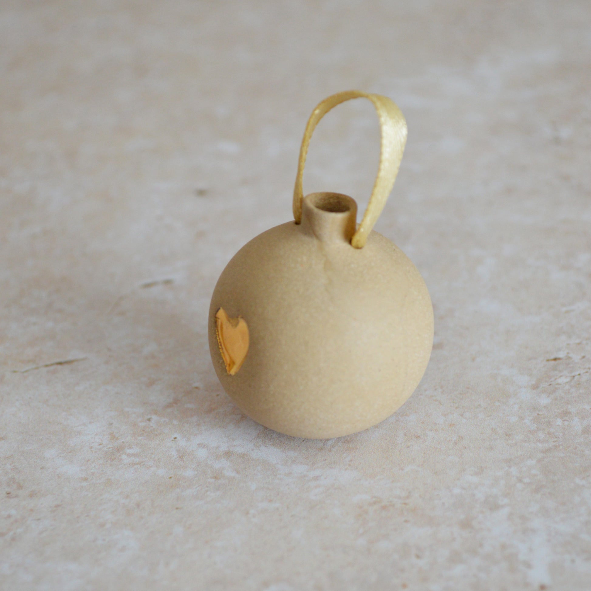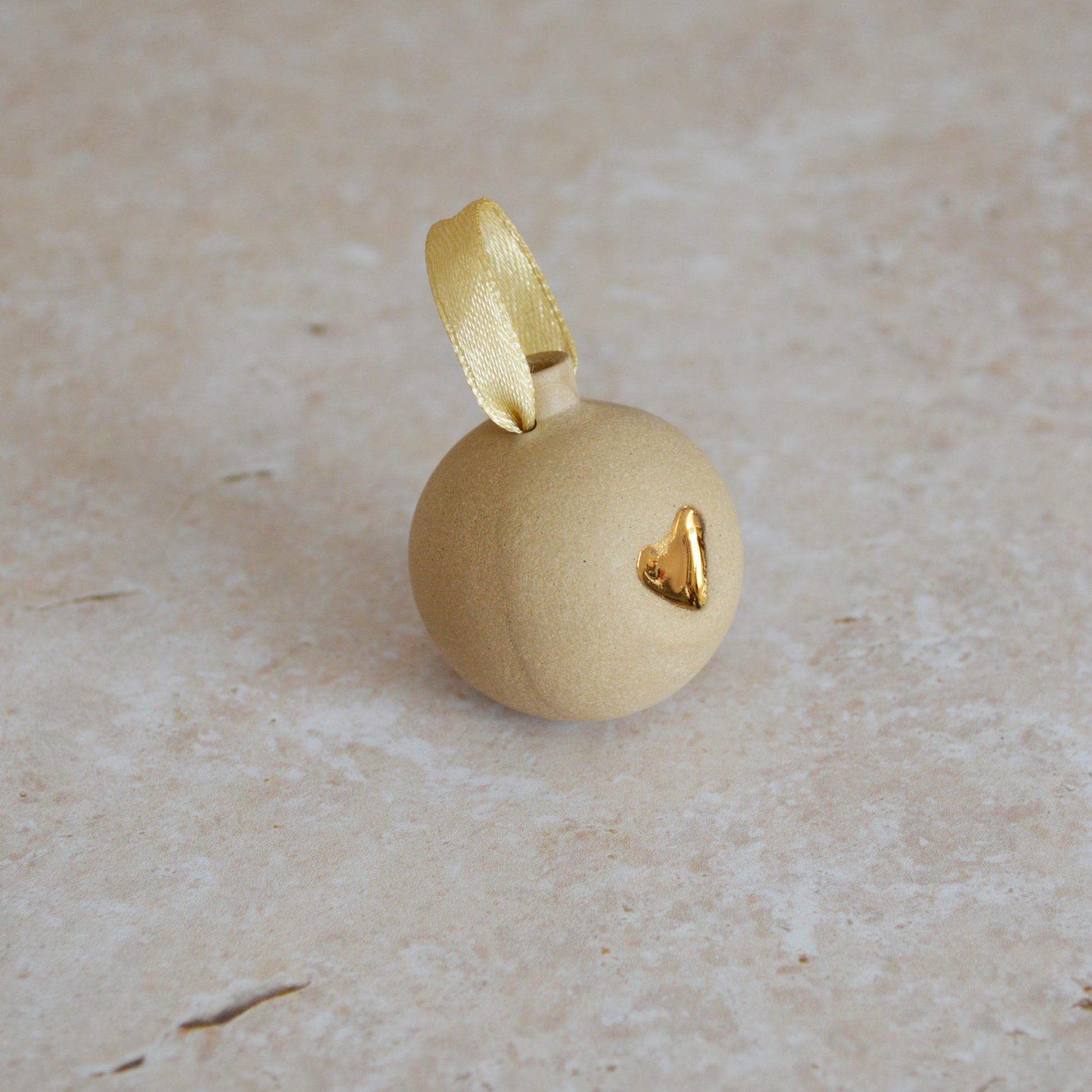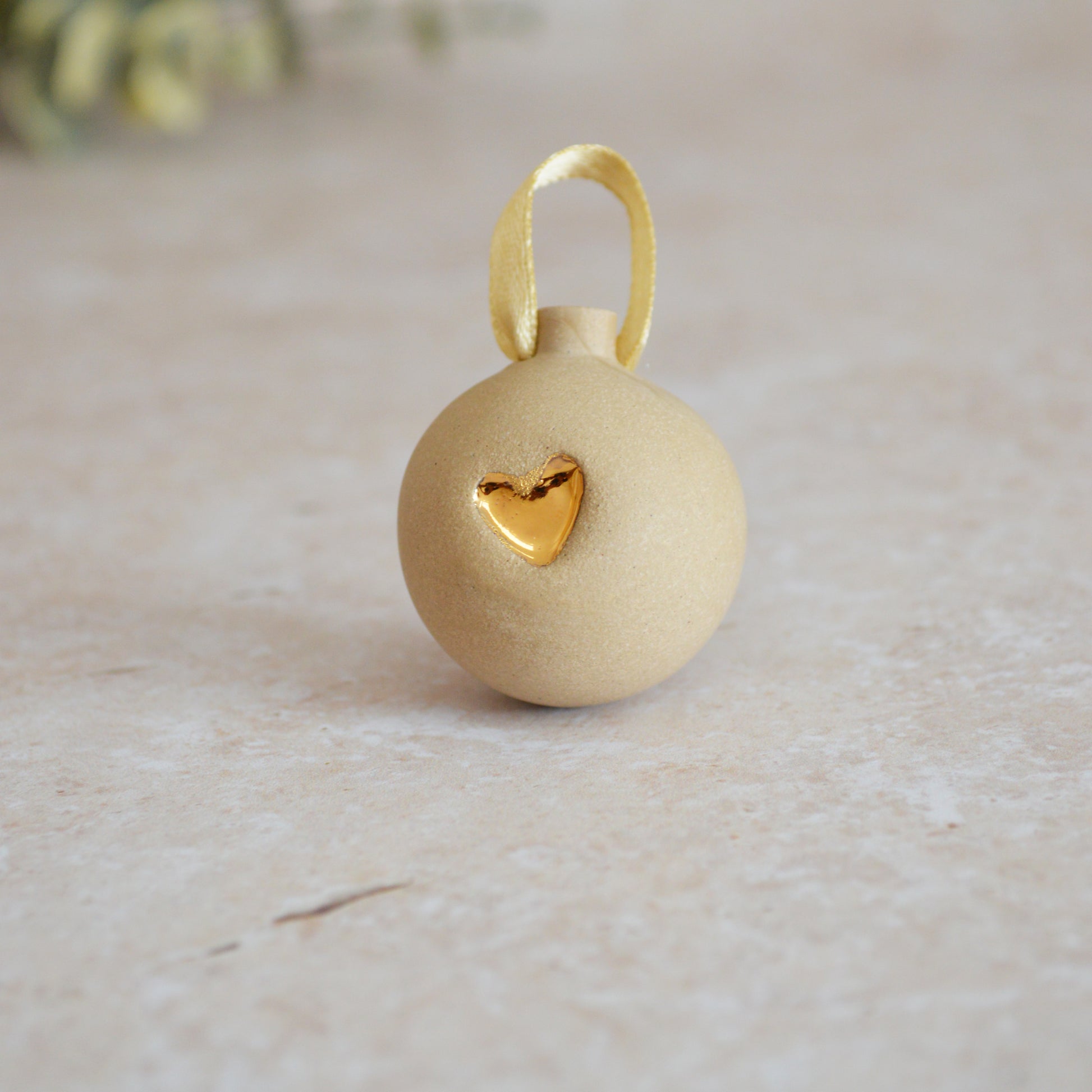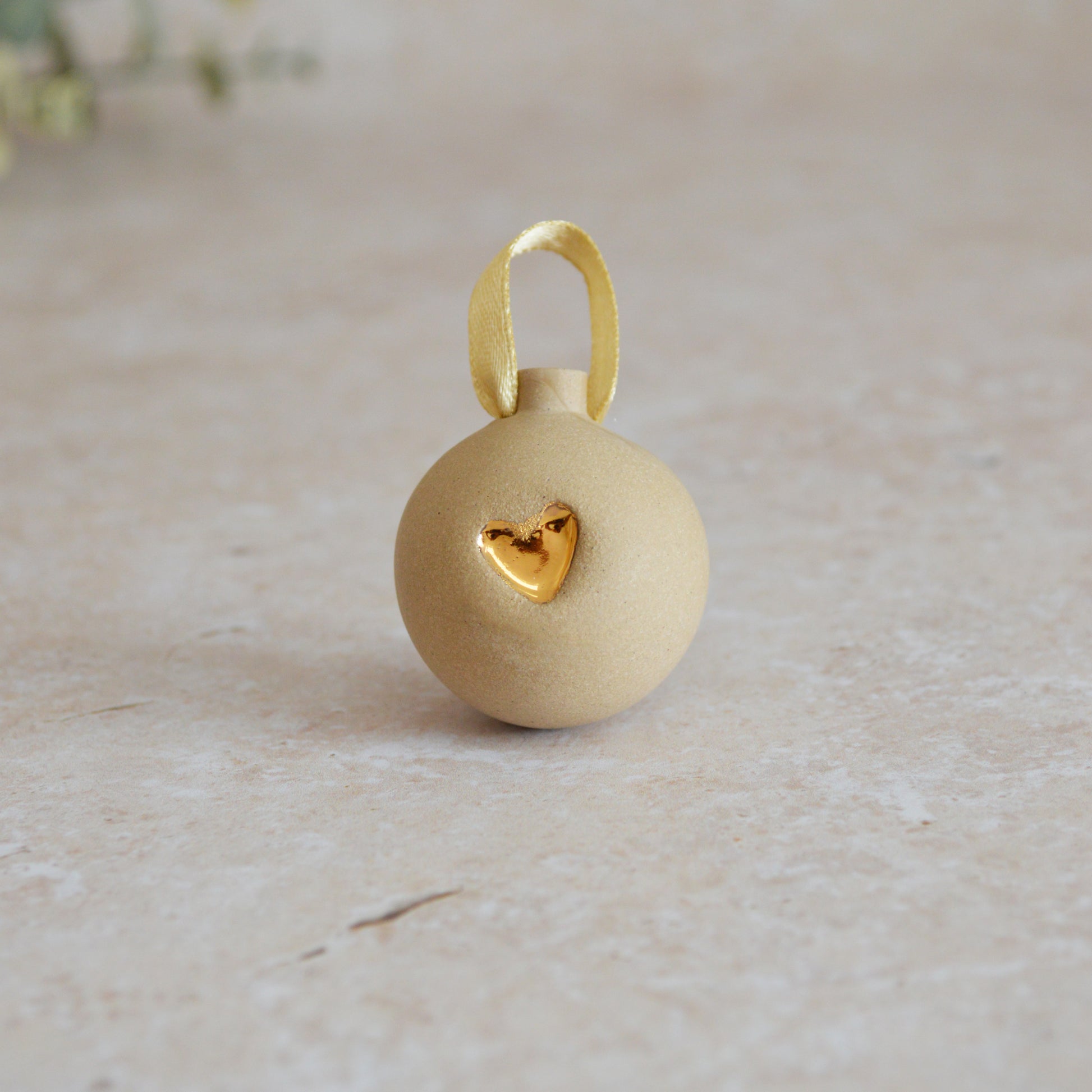 Seconds* BROWN Mini Pastel Bauble With A Gold Heart | Stoneware | Hanging Christmas Decorations | Christmas Tree Decor (B90)