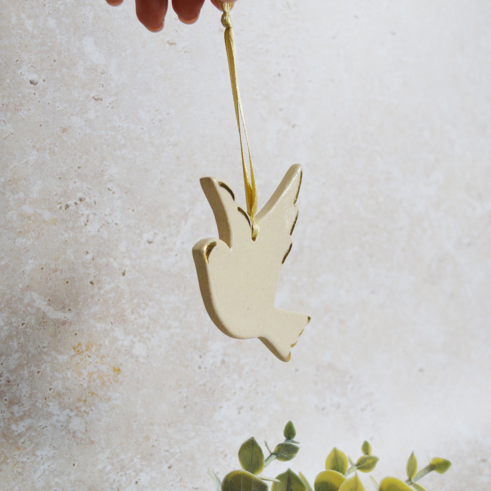 Sample* Stoneware Dove | Glazed Cream | Hanging Decoration | Christmas Decor | Tree Ornament (B41)