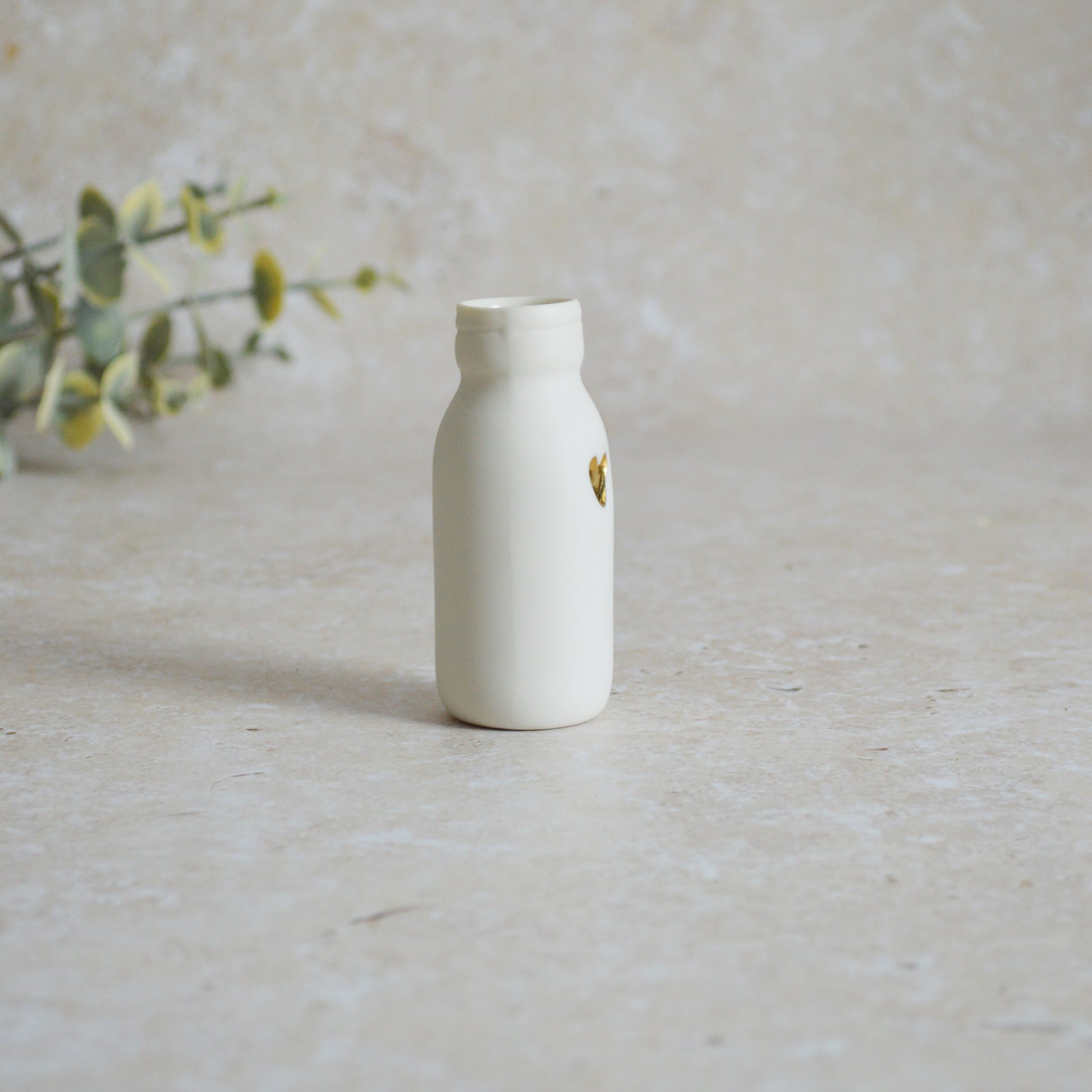 Seconds* SMALL White Bottle Vase With A Gold Embossed Heart | Bottle Vase | Flower Vase | Summer Vase | Mother's Day | Porcelain (A29)
