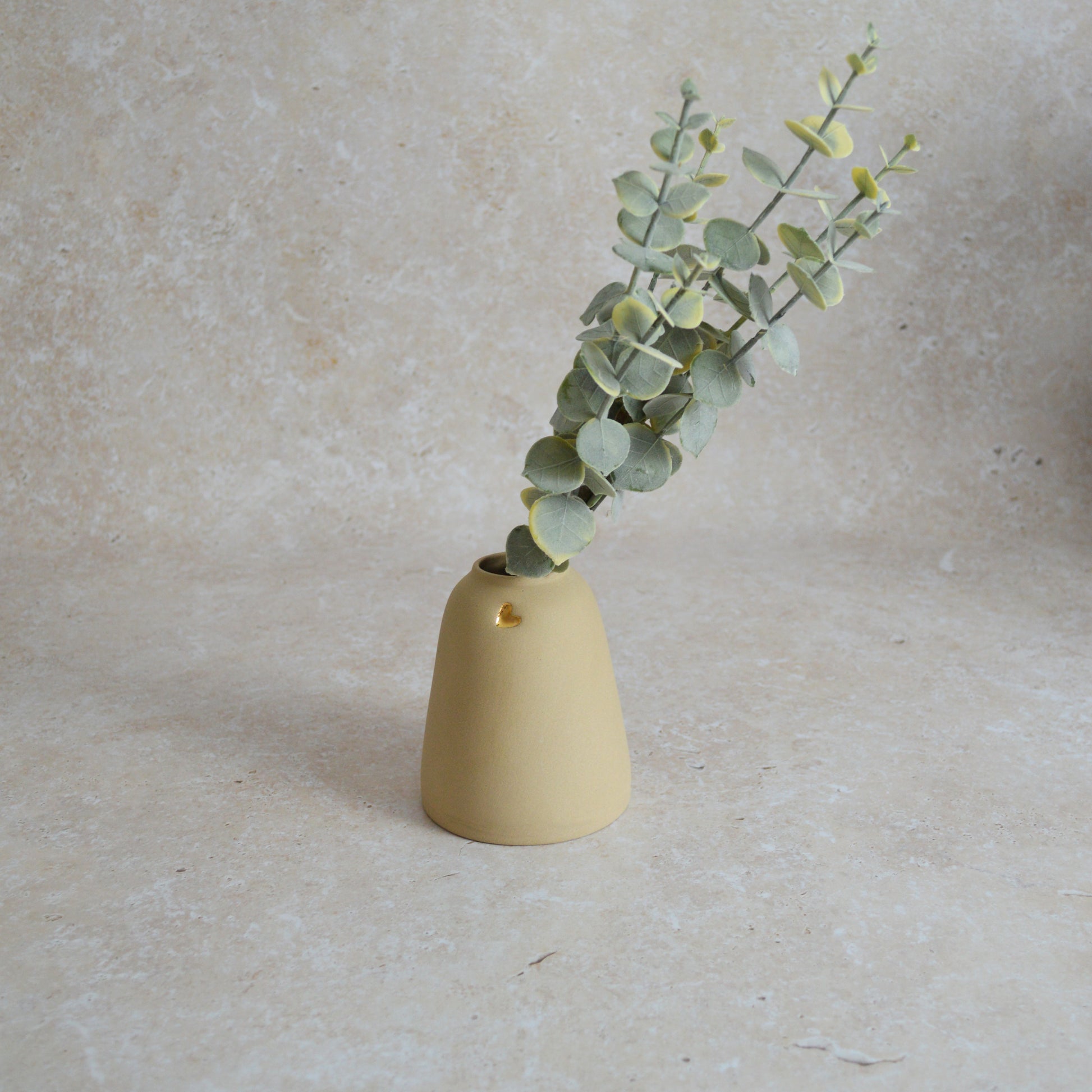 Seconds* Discontinued* Pastel Brown Ceramic Vase With A Short Rim And An Embossed Gold Heart | Flower Vase | Home Decor | Gifts For Her | Stoneware (A62)