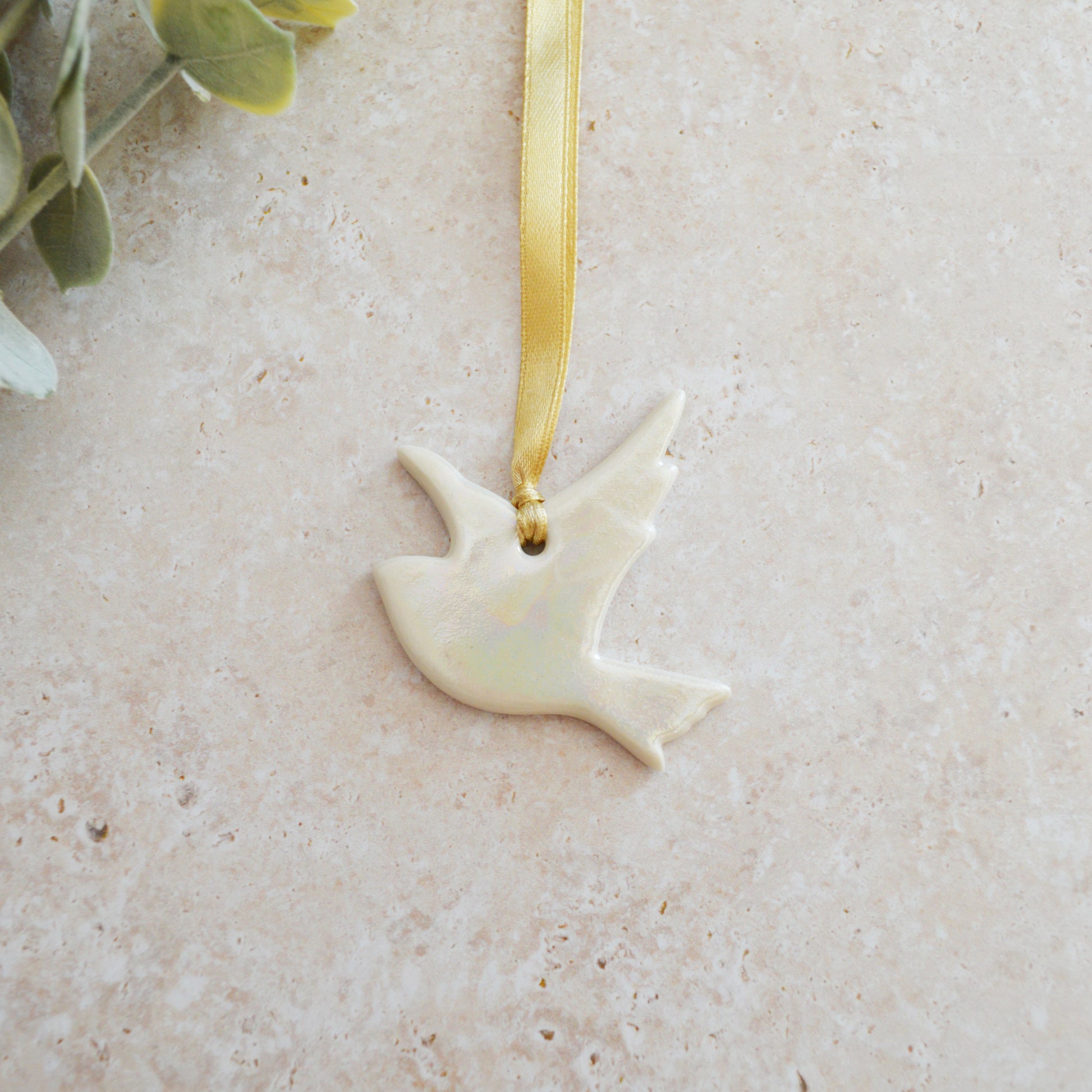 Seconds* Mini Hanging Dove with A Subtle Pearl Finish | Hanging Decoration | Christmas Decor | Tree Ornament (A25)