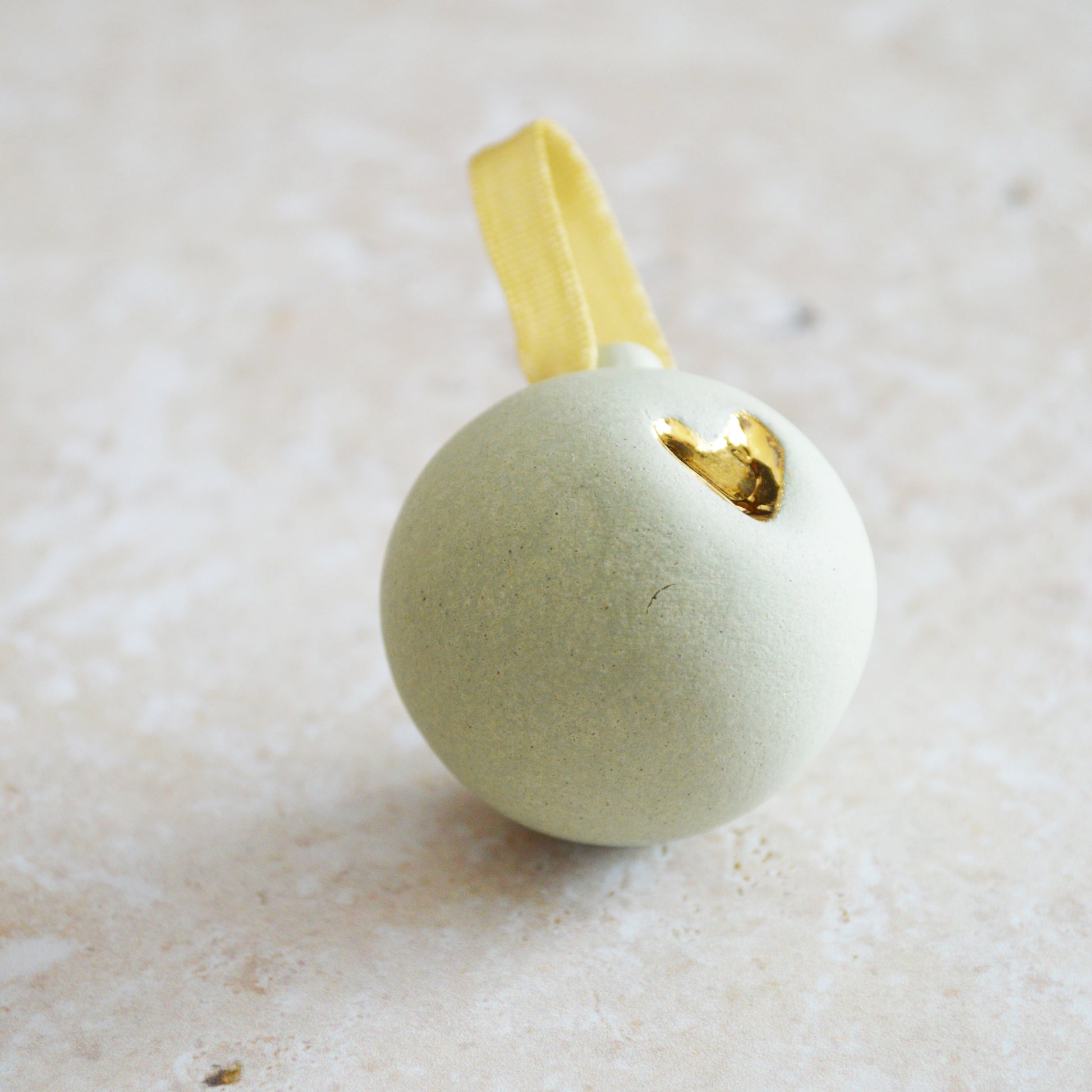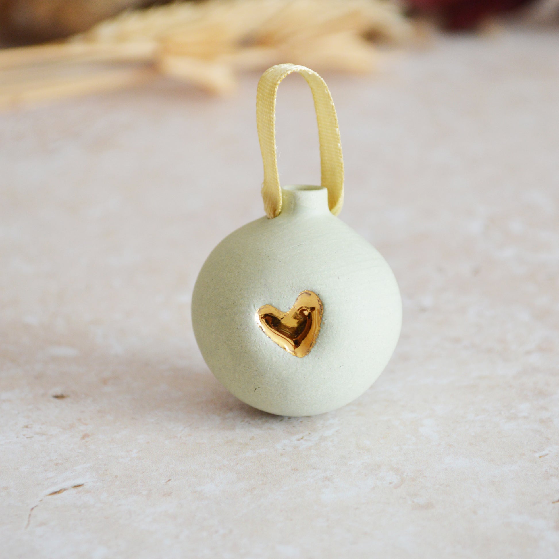 Seconds* MINT Mini Pastel Bauble With A Gold Heart | Stoneware | Hanging Christmas Decorations | Christmas Tree Decor (B89)