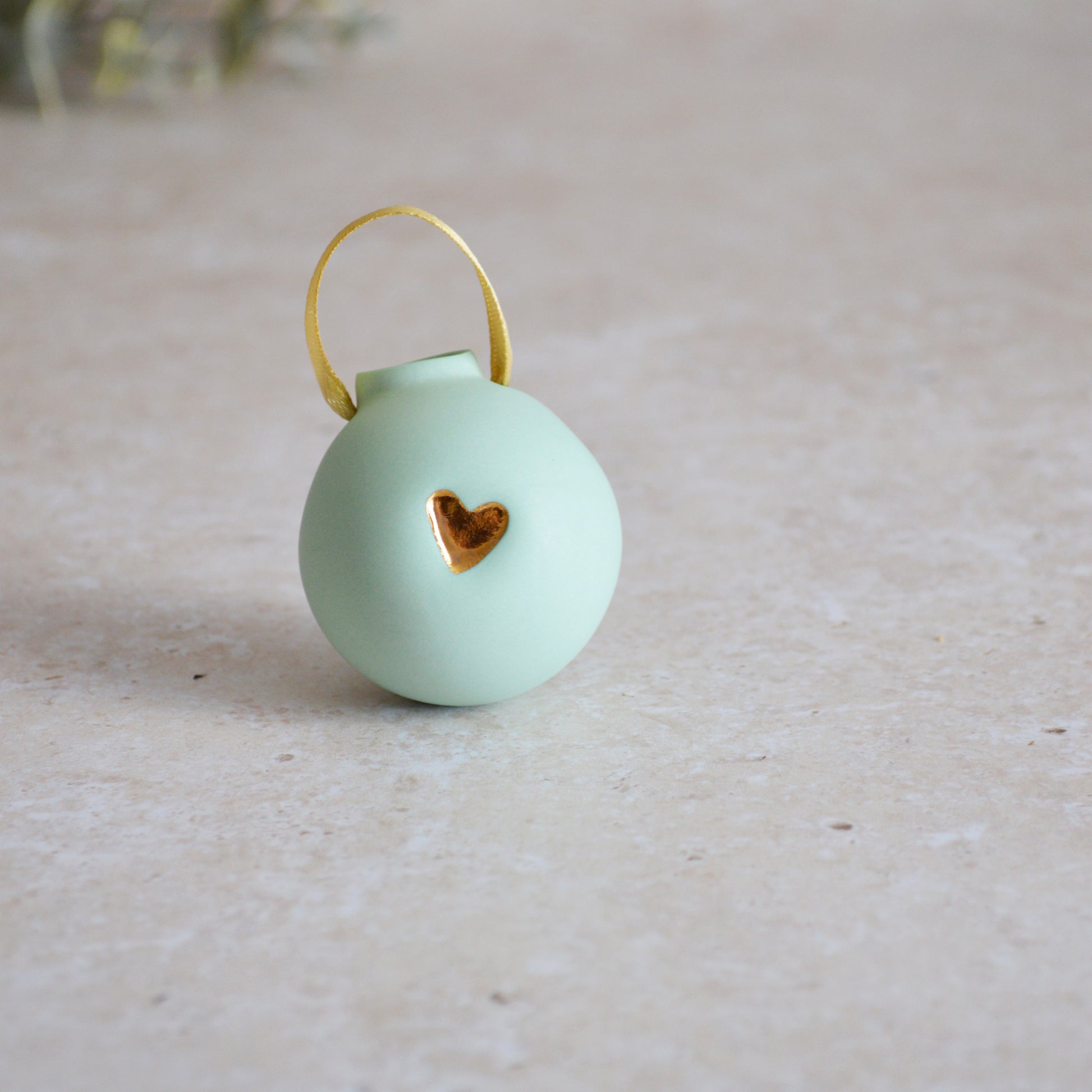 Seconds* Sample* Pastel Porcelain Bauble With A Gold Heart | Porcelain | Hanging Christmas Decorations | Christmas Tree Decor (A110 & A115)