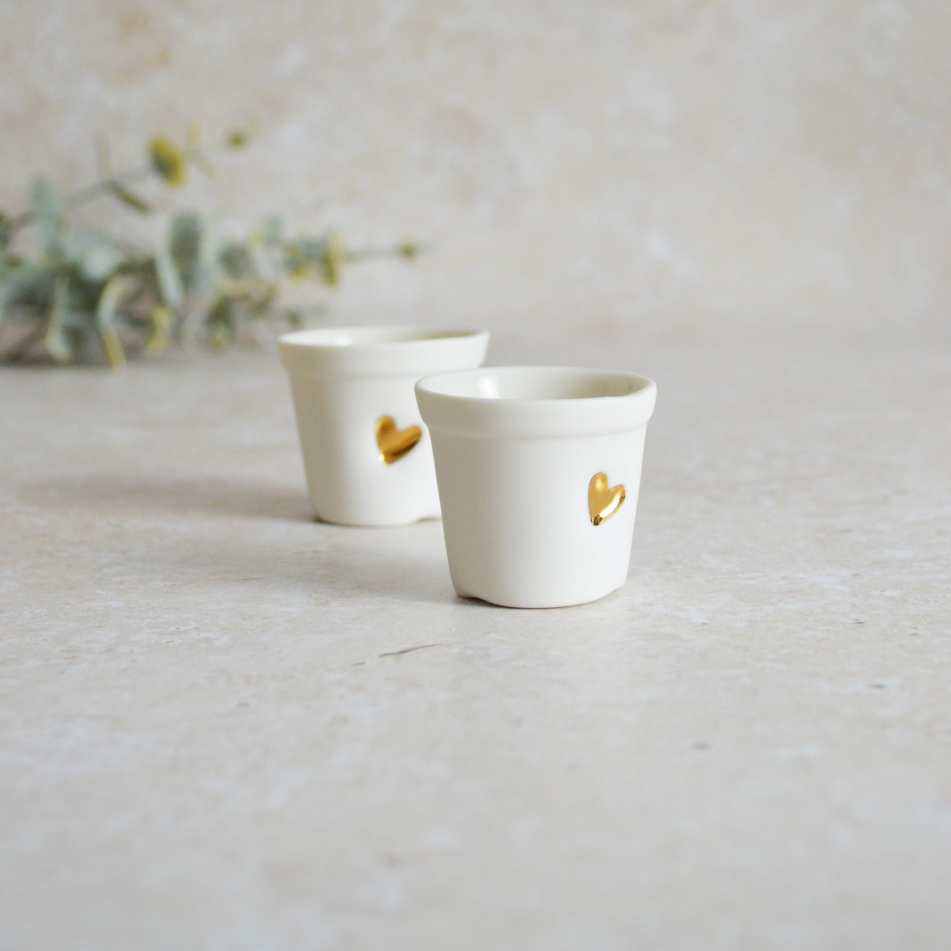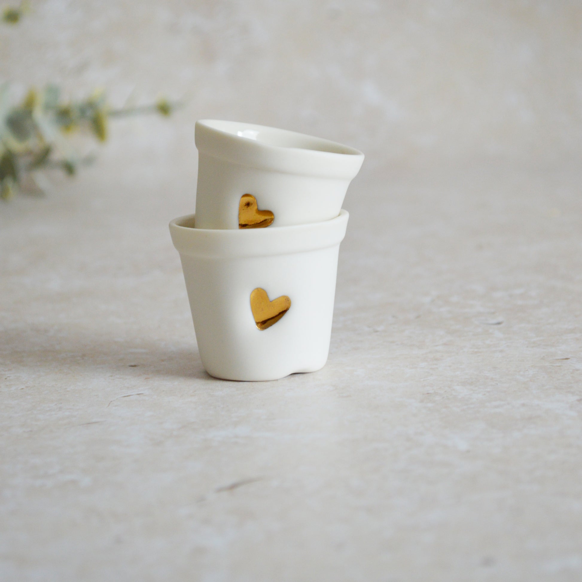 Discontinued* Seconds* A Pair of Mini Porcelain Pots with a Gold Embossed Heart | Porcelain | Pots | Handcrafted | Mini Plant Pot (A103)