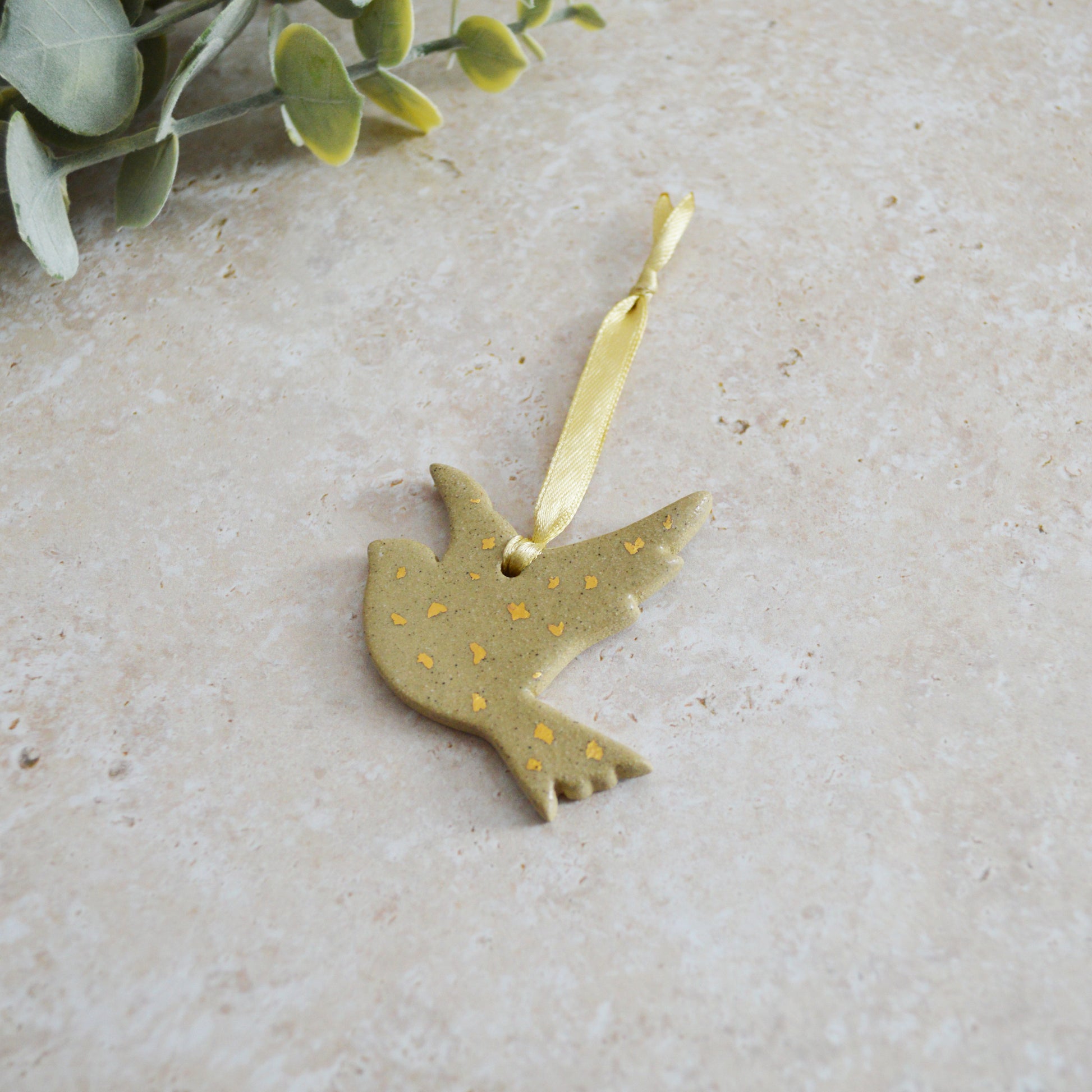 Sample* Mini Hanging Dove Gold Lustre Markings | Sand| Hanging Decoration | Christmas Decor | Tree Ornament (A108)
