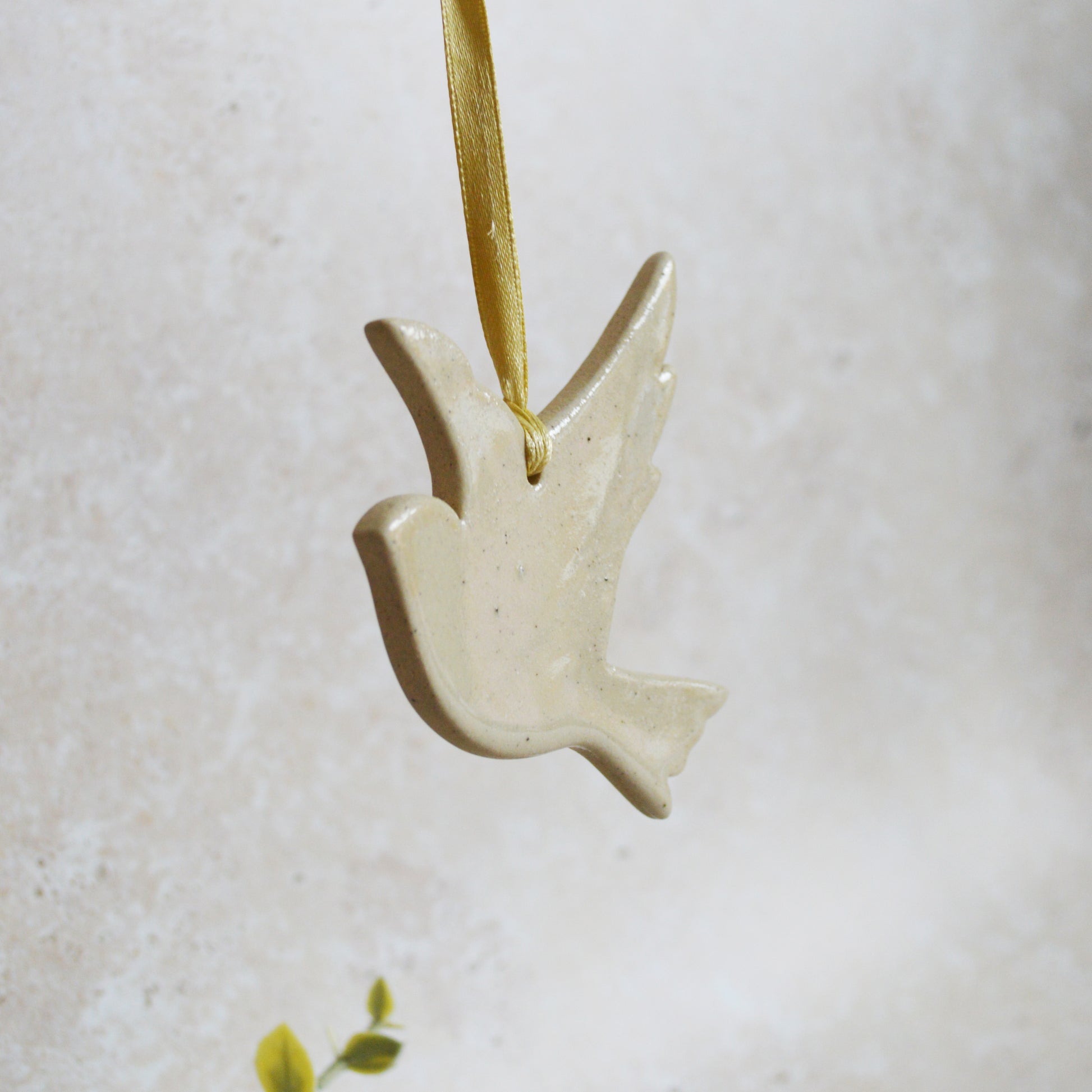 Sample* Stoneware Dove | Glazed Speckled Cream | Hanging Decoration | Christmas Decor | Tree Ornament (B43)
