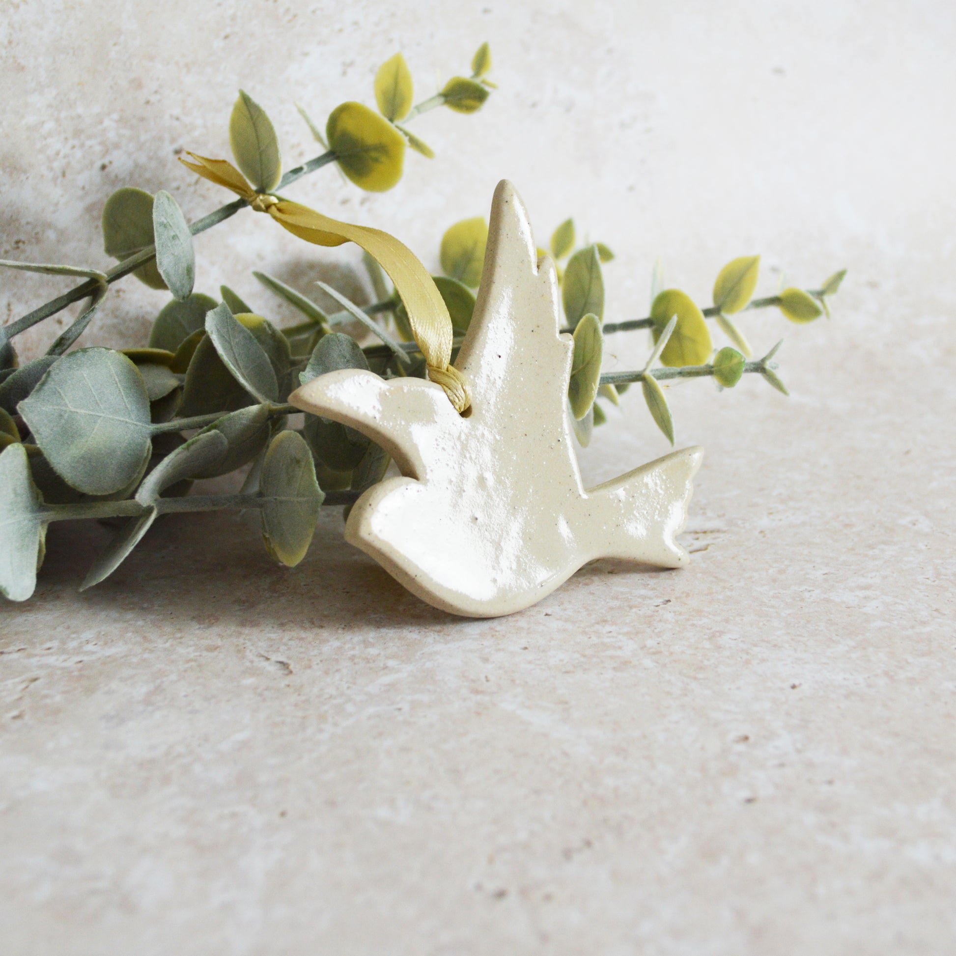 If you're looking for simple and elegant Christmas tree decorations this stoneware dove is the perfect find. Every dove is carefully handmade and handled as it’s taken through each process, before being sent to it’s new home. Perfect especially around Christmas time for trees and decoration around the home, bringing a little elegance to any living space.
