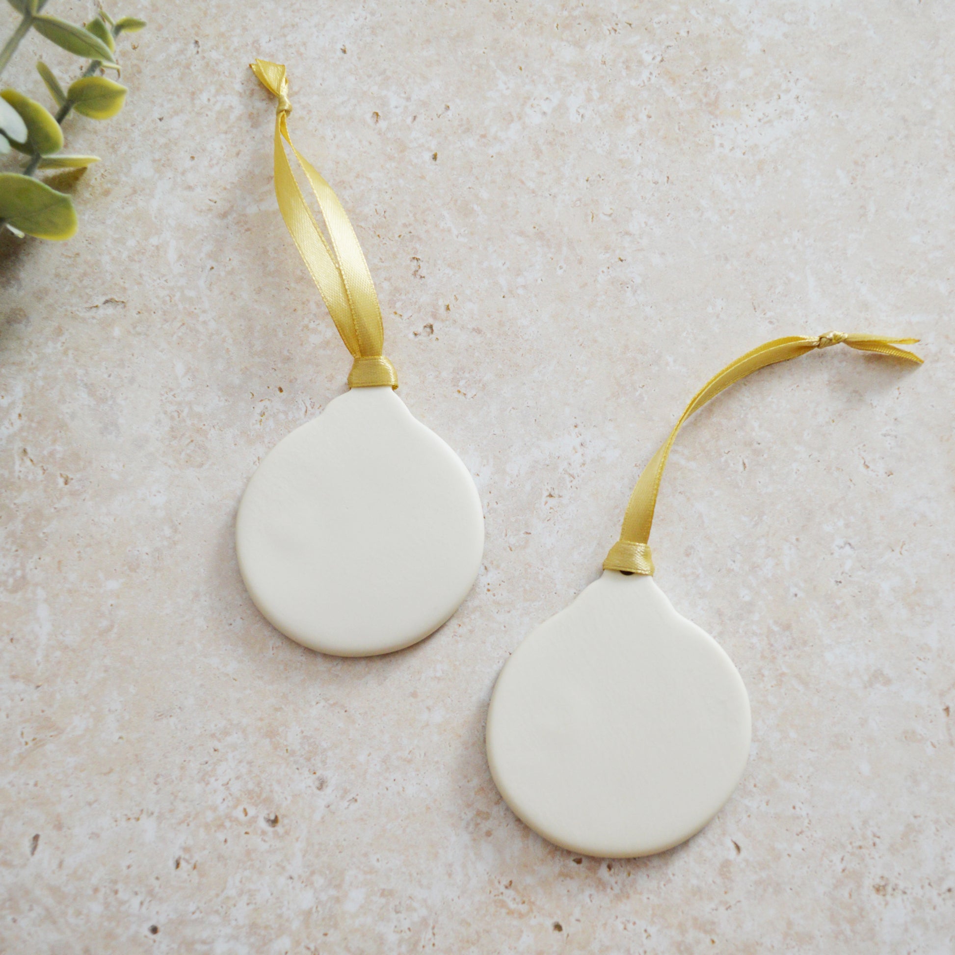 From rolling out porcelain, to cutting, cleaning up and polishing, every step of making is handled with the utmost love and care. Every bauble is embossed with our very own handmade stamp which is then carefully hand painted with gold lustre. Gold ribbon is then added and sealed for hanging.