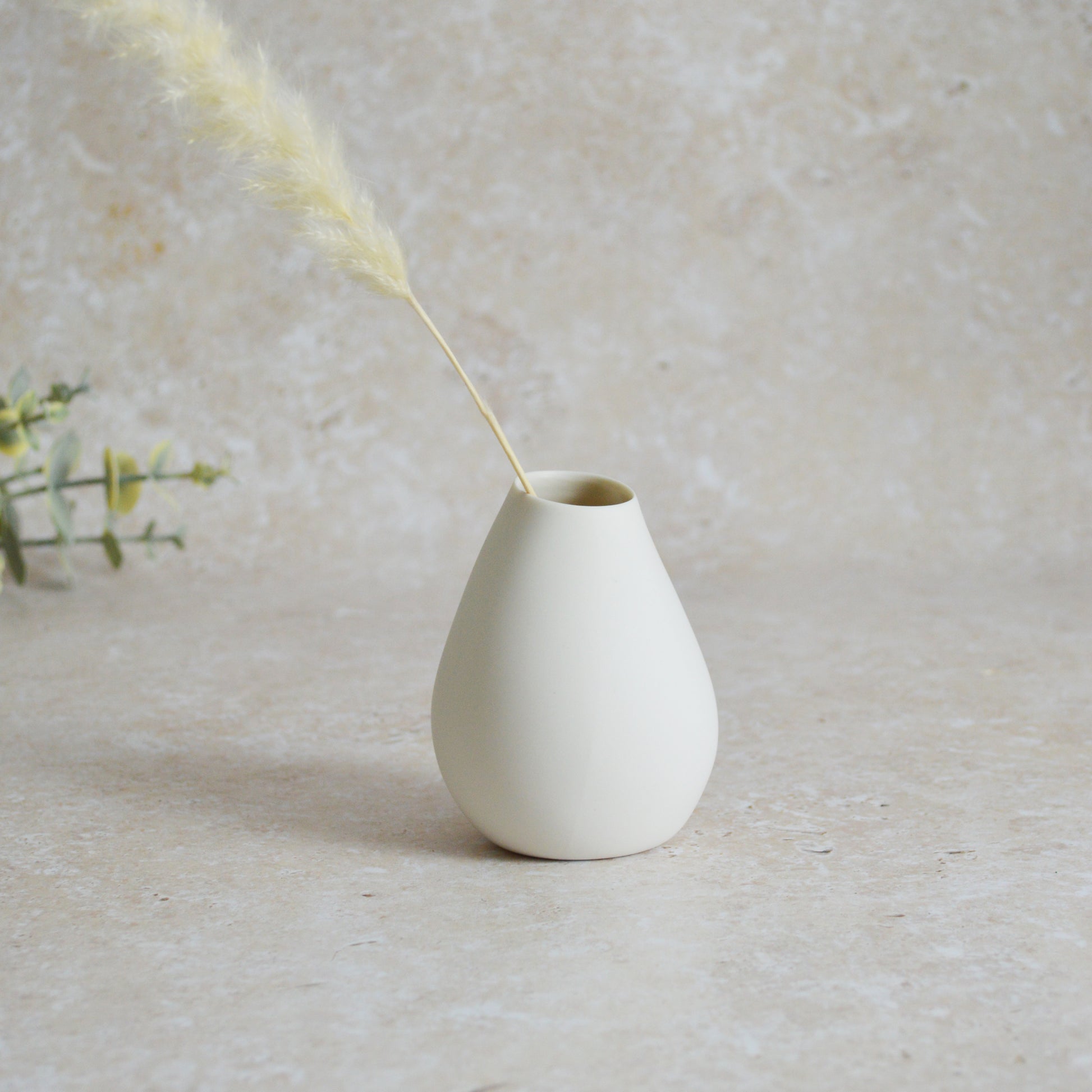 Frequently brought for Mother's Day, Birthday's and Christmas, this small porcelain bud vase is perfect for a collection of small flowers, dried or fresh. The sweetest little addition to any room.