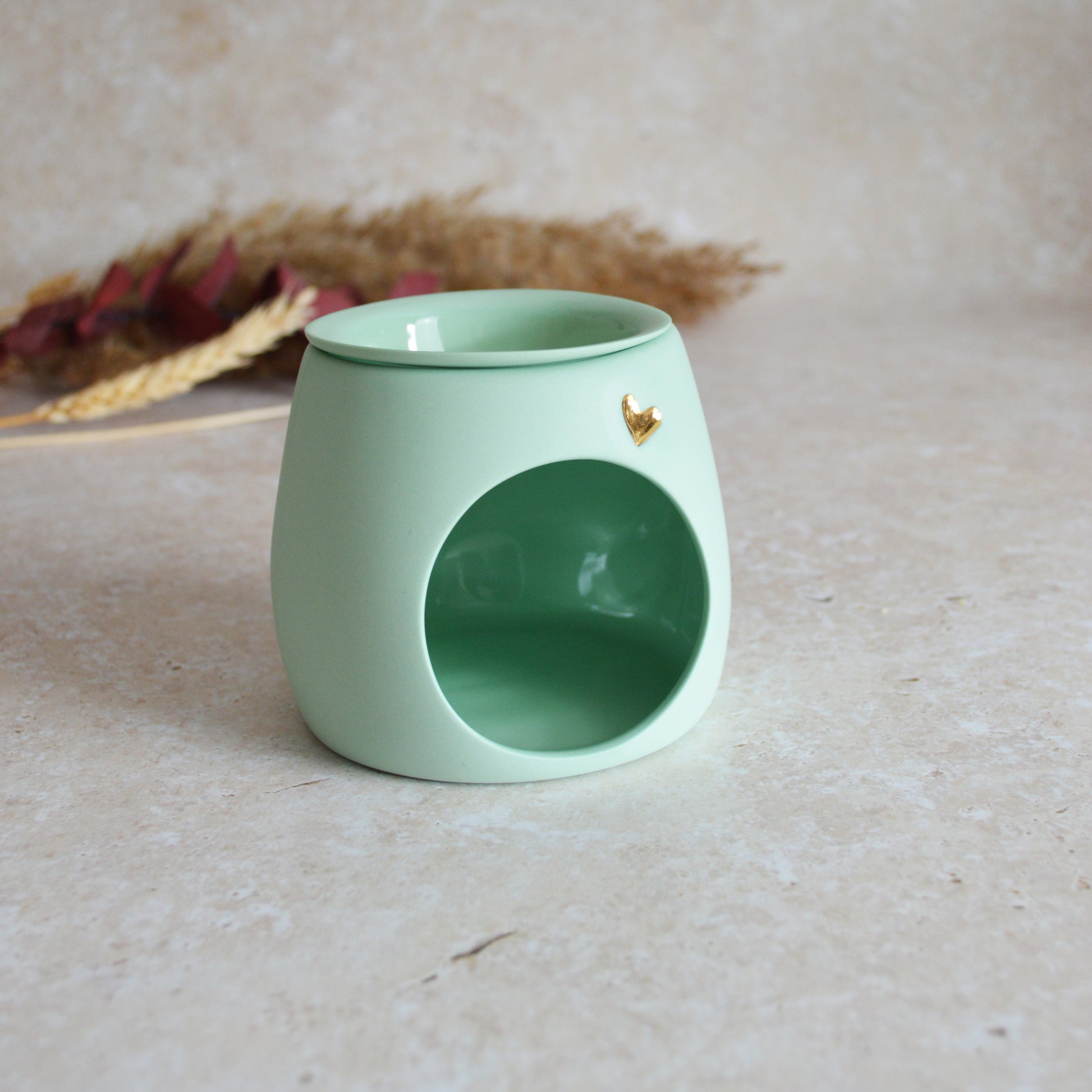 Seconds* Pastel MINT Wax And Oil Burner With A Gold Embossed Heart And Detachable Lid | Wax Burner | Porcelain (A2)