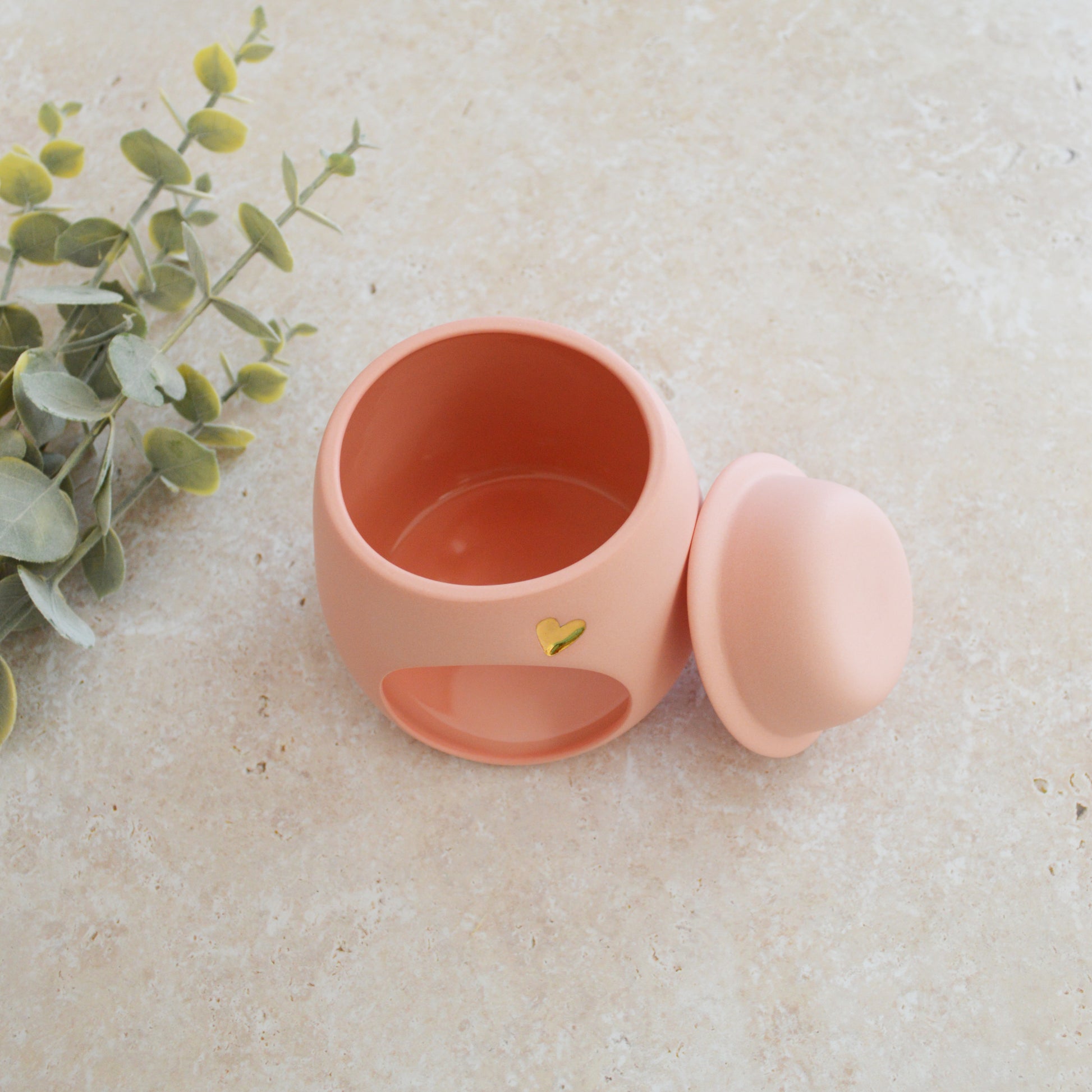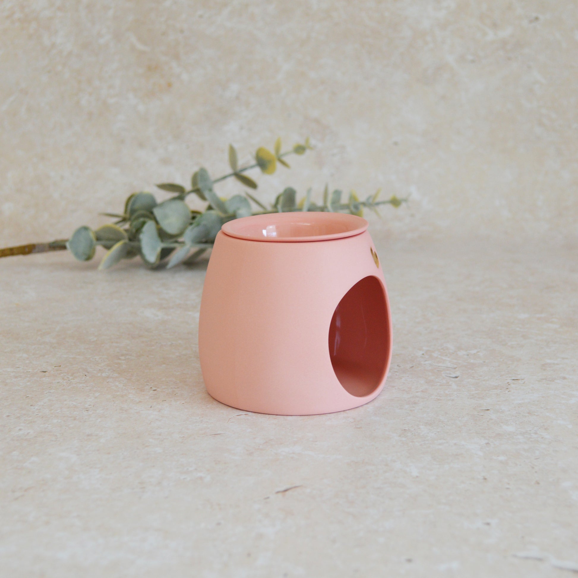 Seconds* Pastel PINK Wax And Oil Burner With A Gold Embossed Heart And Detachable Lid | Wax Burner | Porcelain (A39)