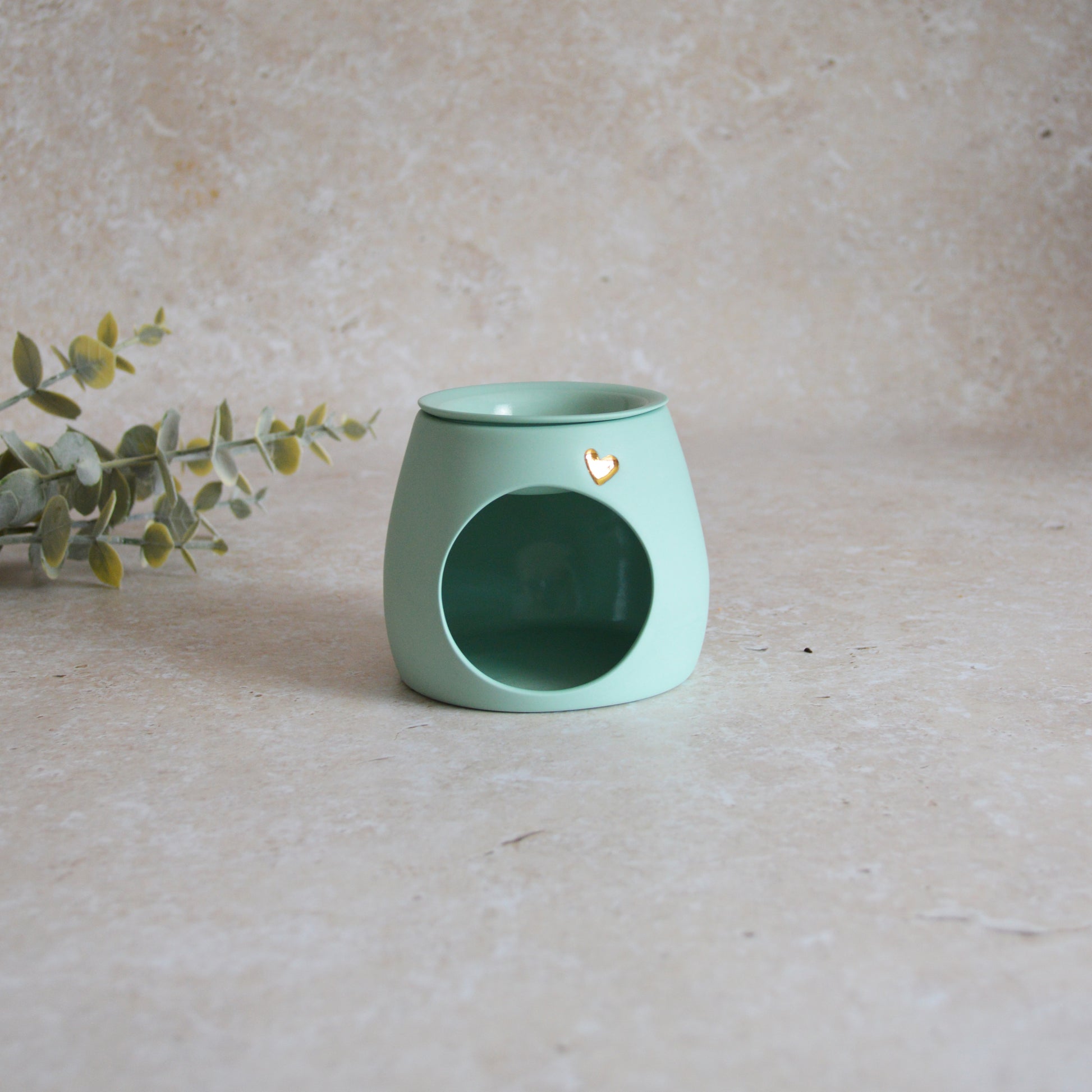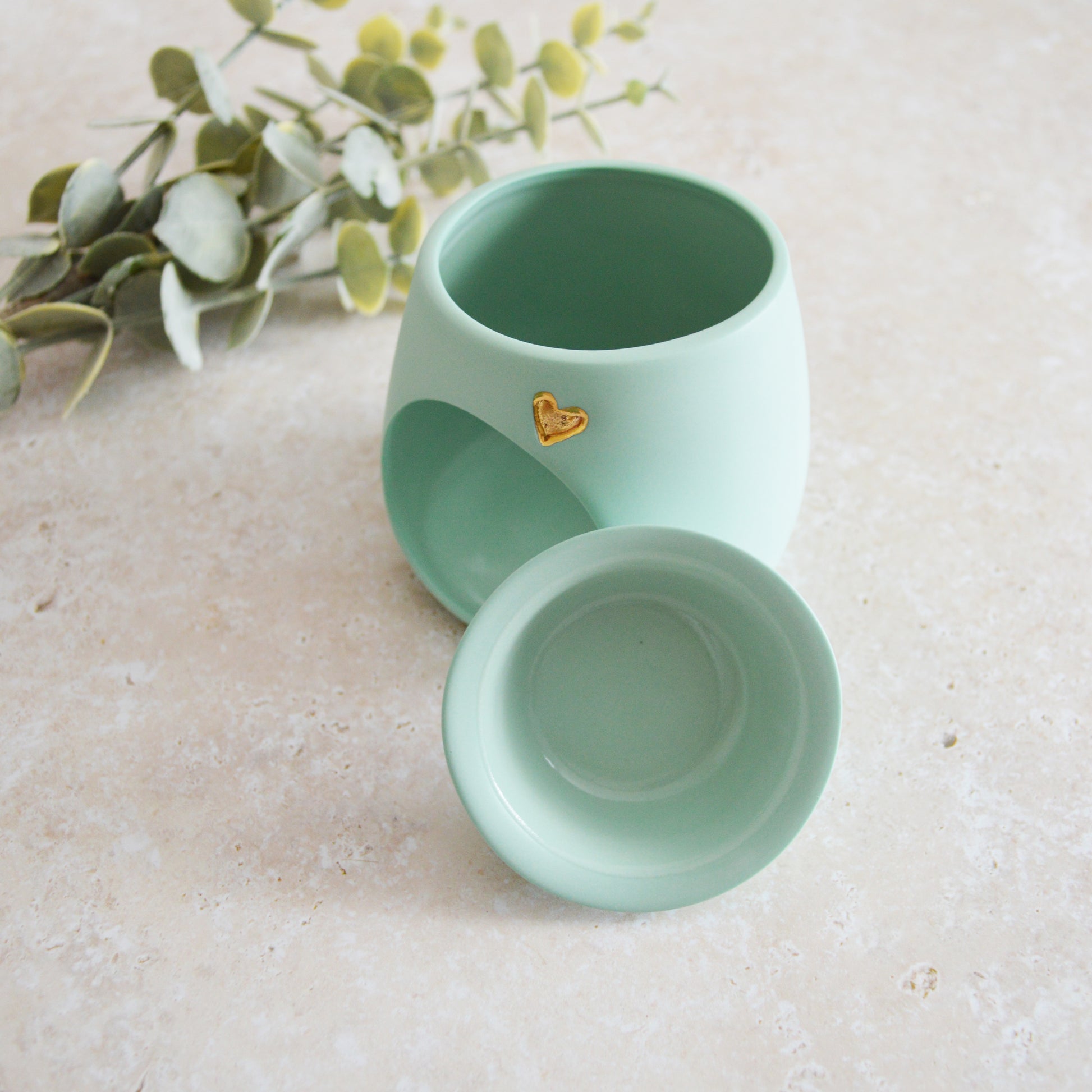 Seconds* Pastel MINT Wax And Oil Burner With A Gold Embossed Heart And Detachable Lid | Wax Burner | Porcelain (A42)