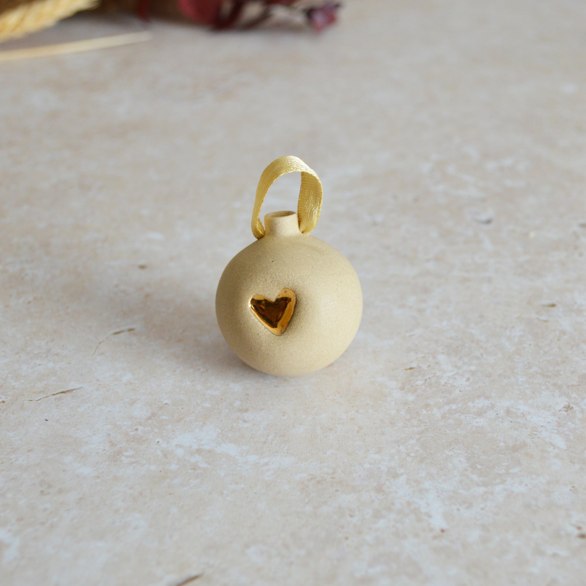 Seconds* BROWN Mini Pastel Bauble With A Gold Heart | Stoneware | Hanging Christmas Decorations | Christmas Tree Decor (B94)