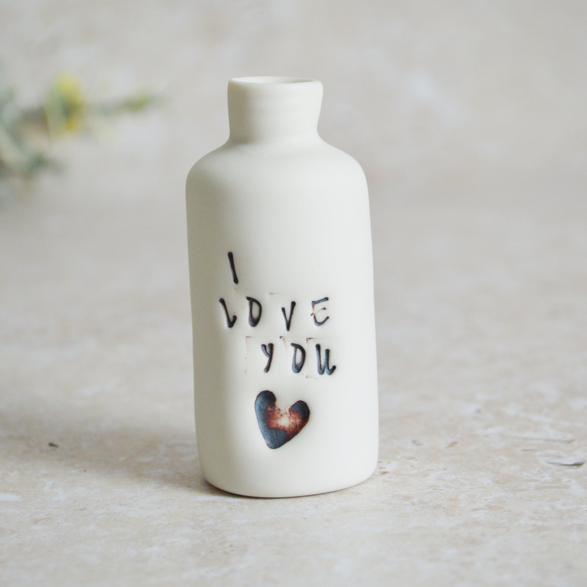 If you're looking for a sweet, handmade, forever keepsake for someone you love, this porcelain bottle is perfect. Be it a partner, friend or anyone you love, it's the cutest way to tell someone you love them and a perfect reminder for them every time they see it. Great for gifting on Anniversaries, Valentines, Mother's Day or as a simple Thinking of You gift.