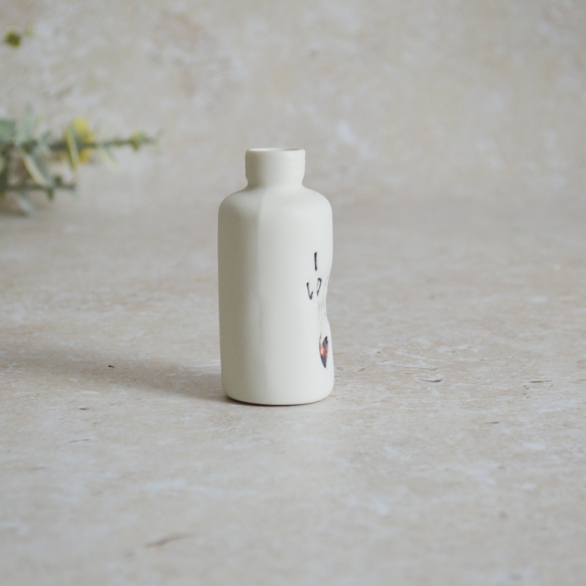 Seconds* Discontinued* I Love You Small Bottle With an Oxide Heart | Porcelain | Valentines Keepsake (B51)