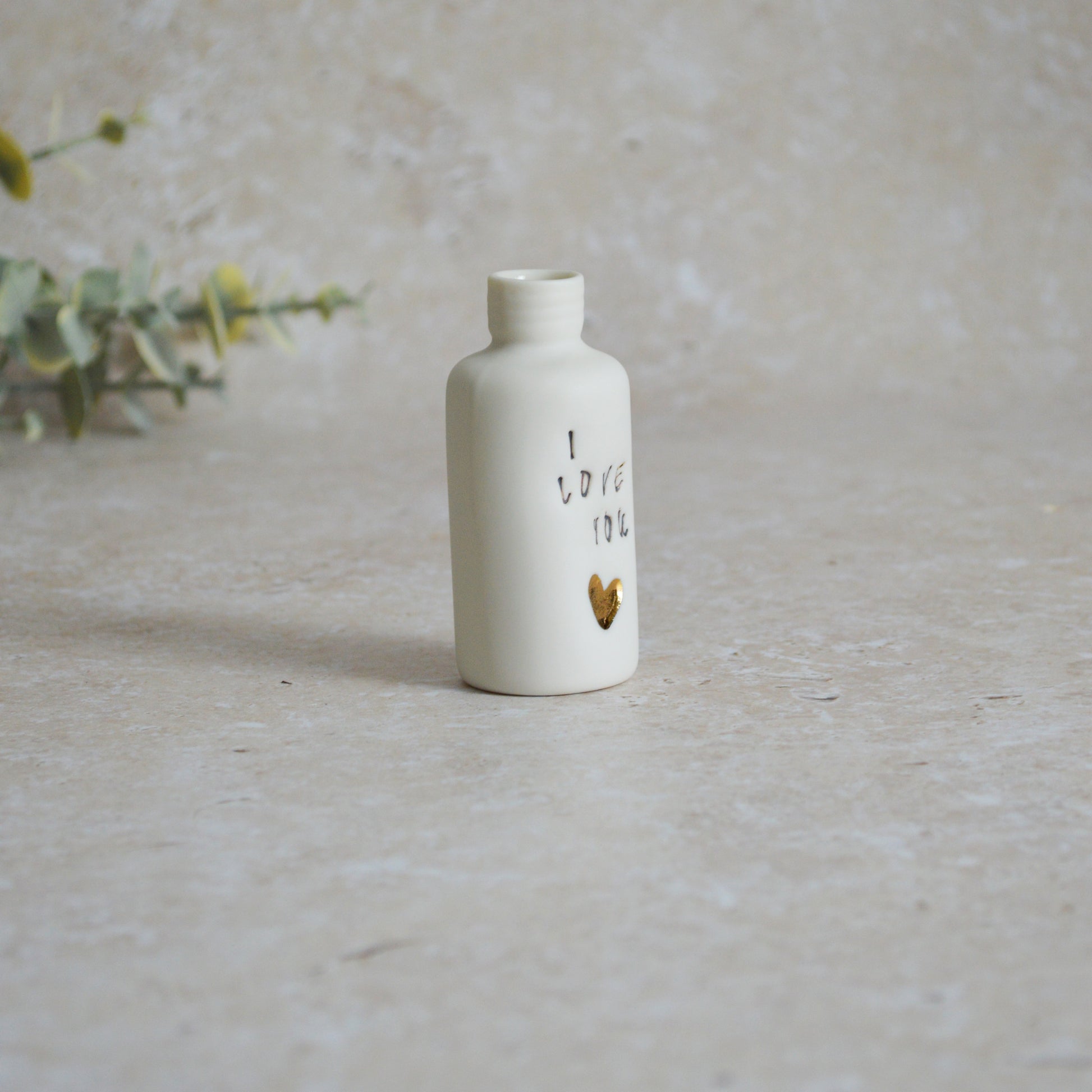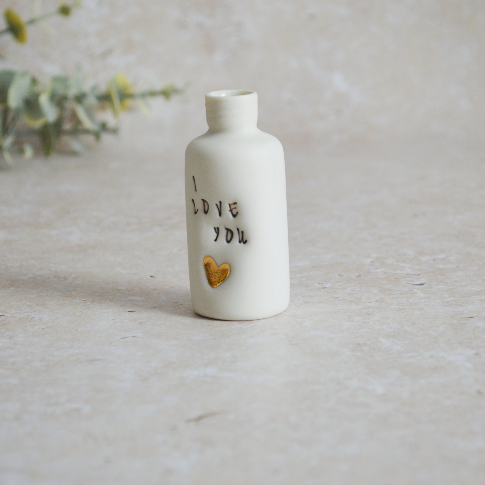 Seconds* Discontinued* I Love You Small Bottle With A Gold Heart | Porcelain | Valentines Keepsake (B50)