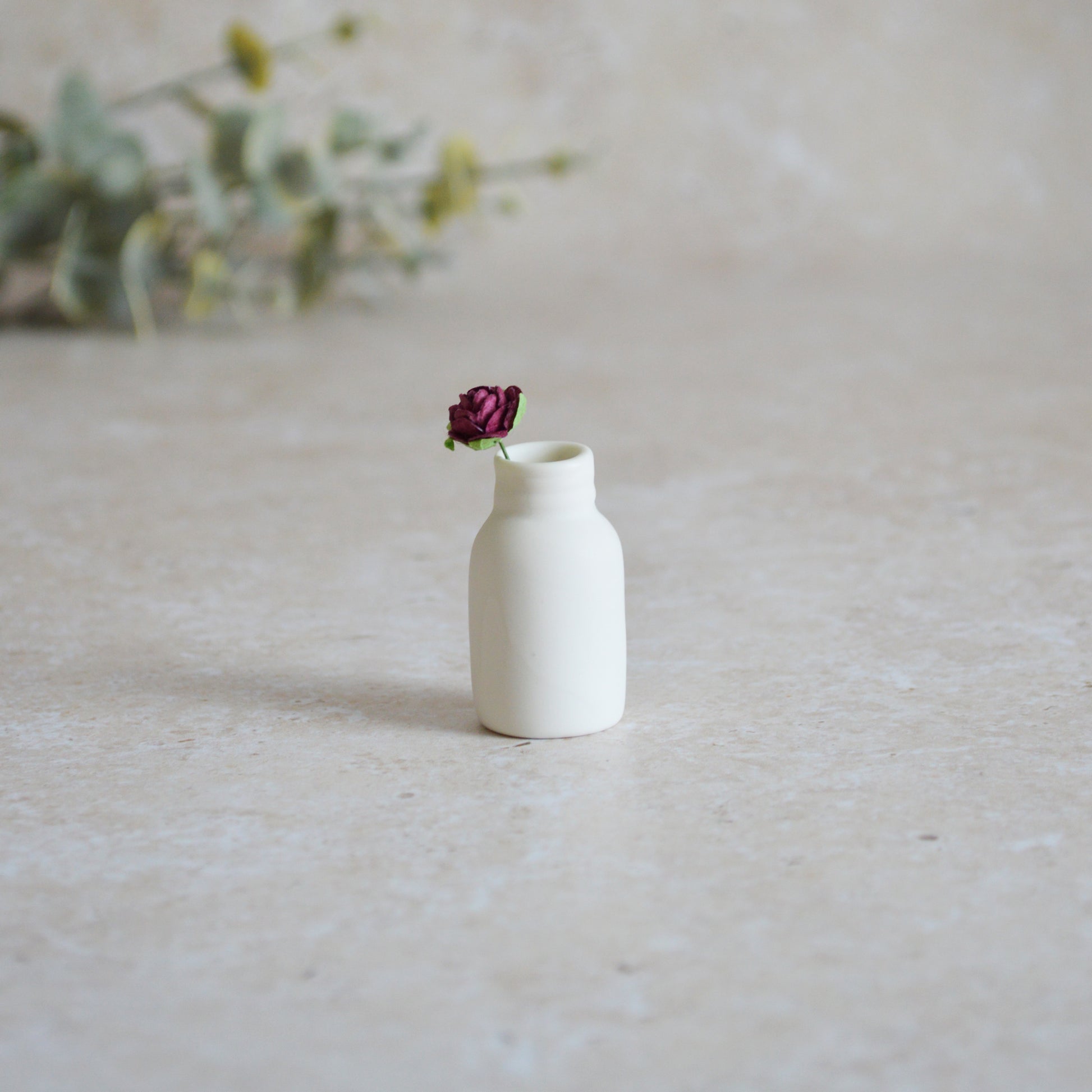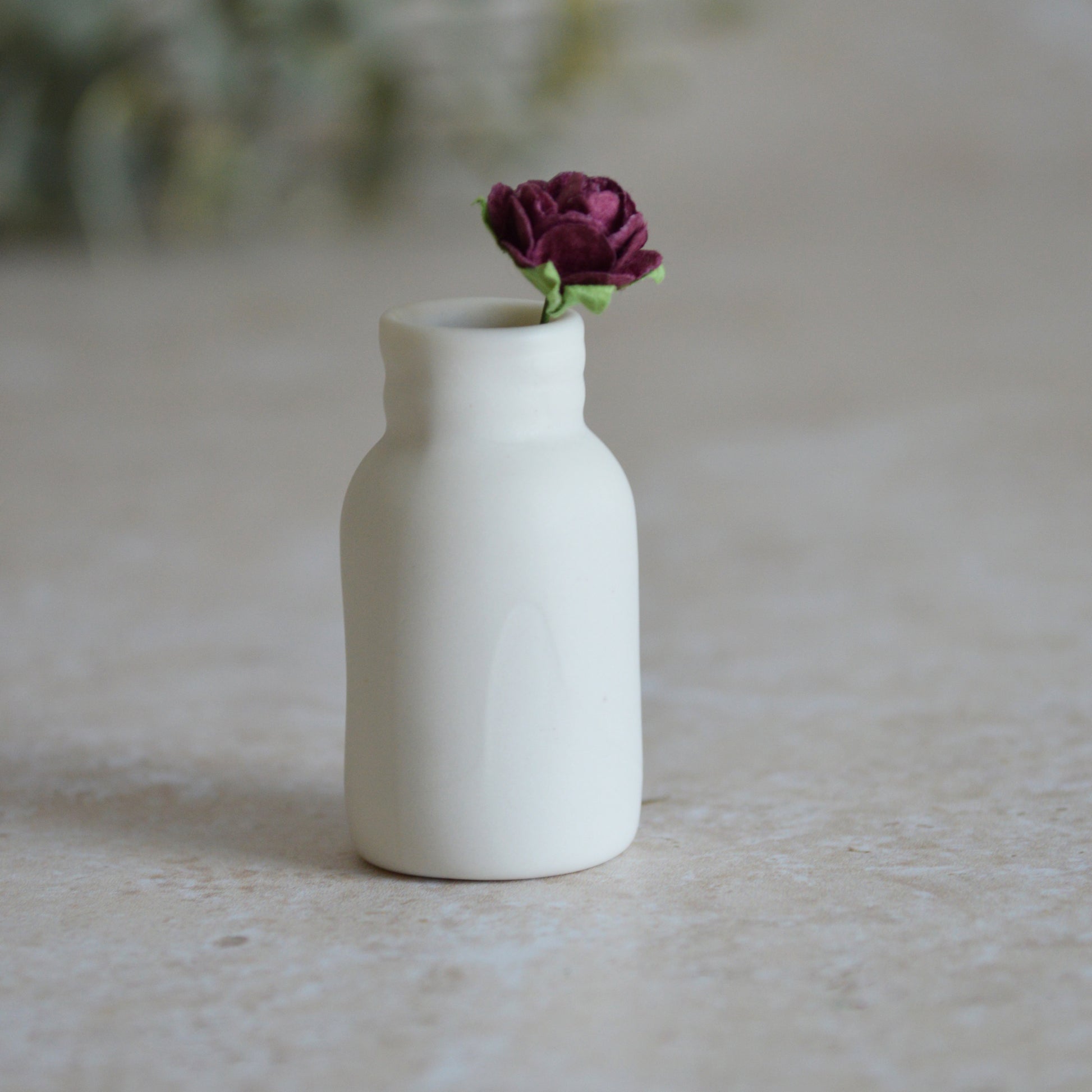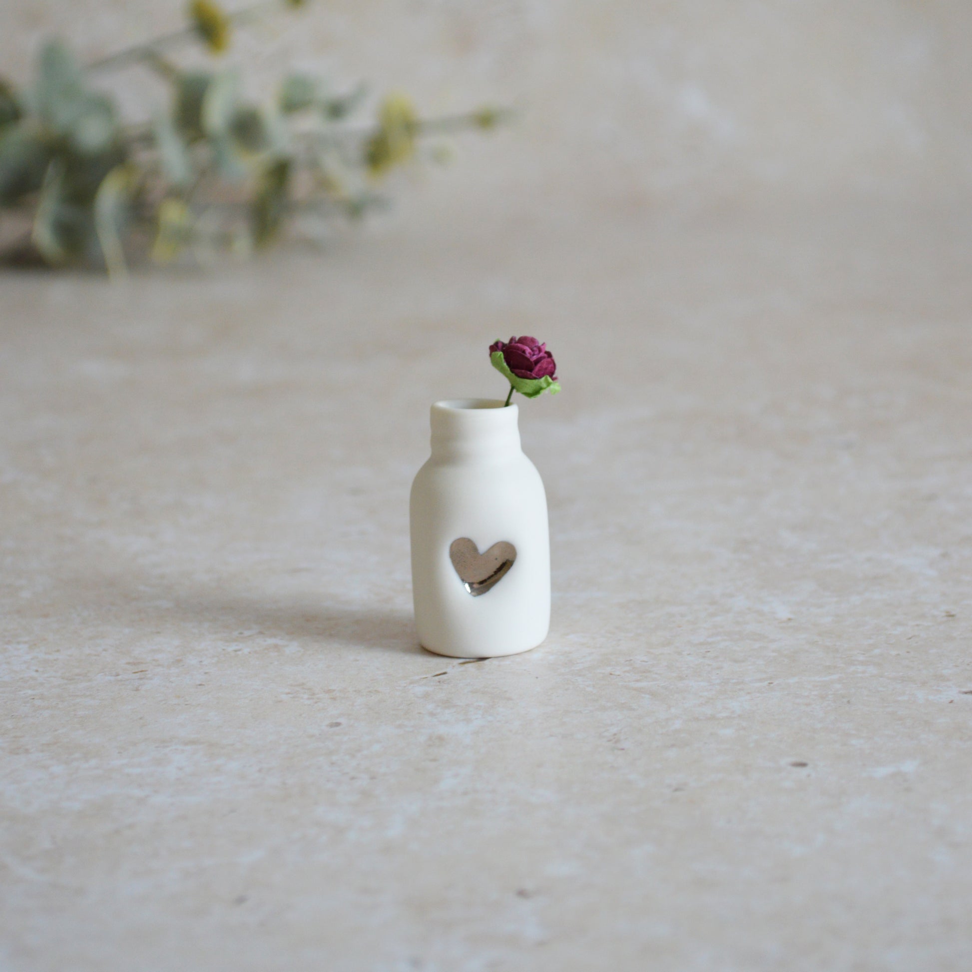 Seconds* Mini Bottle with An Embossed Silver Heart and a Maroon Paper Rose | Valentine's Gifts | Porcelain (B4)