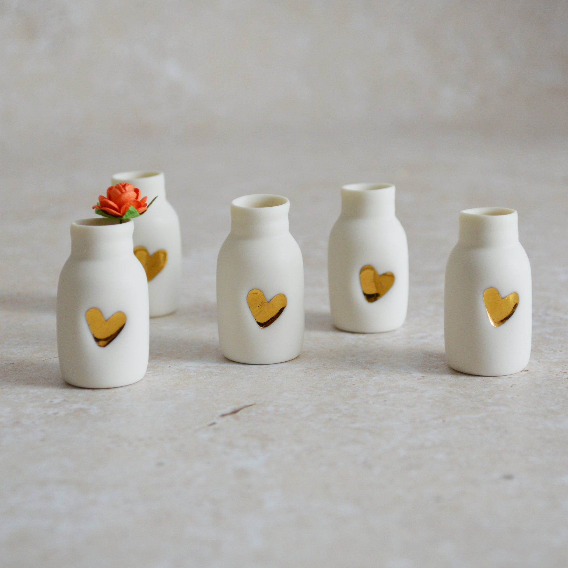 Seconds* Mini Bottle with An Embossed Gold Heart and Paper Rose | Valentine's Gifts | Porcelain (B3)